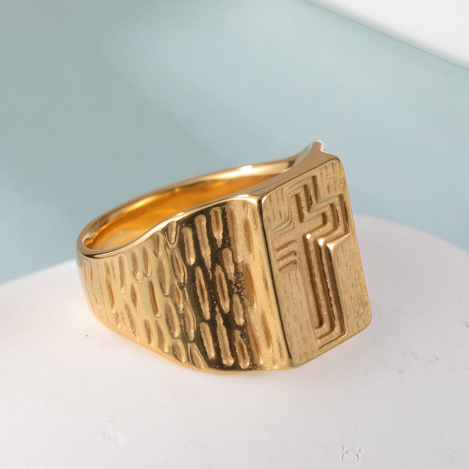 24k Gold Plated Cross Stainless Steel Men’s Ring丨G002342