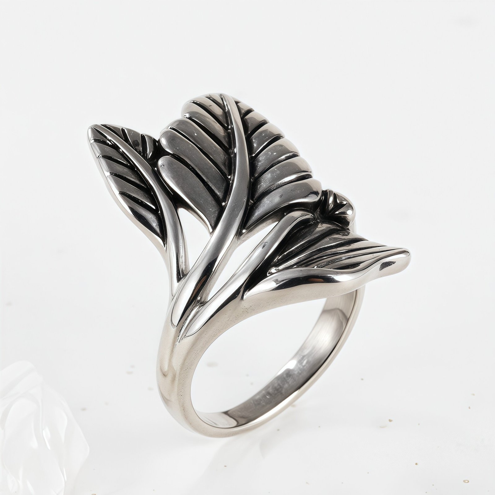 Simple Natural Leaf Silver Stainless Steel Women’s Ring丨K07151