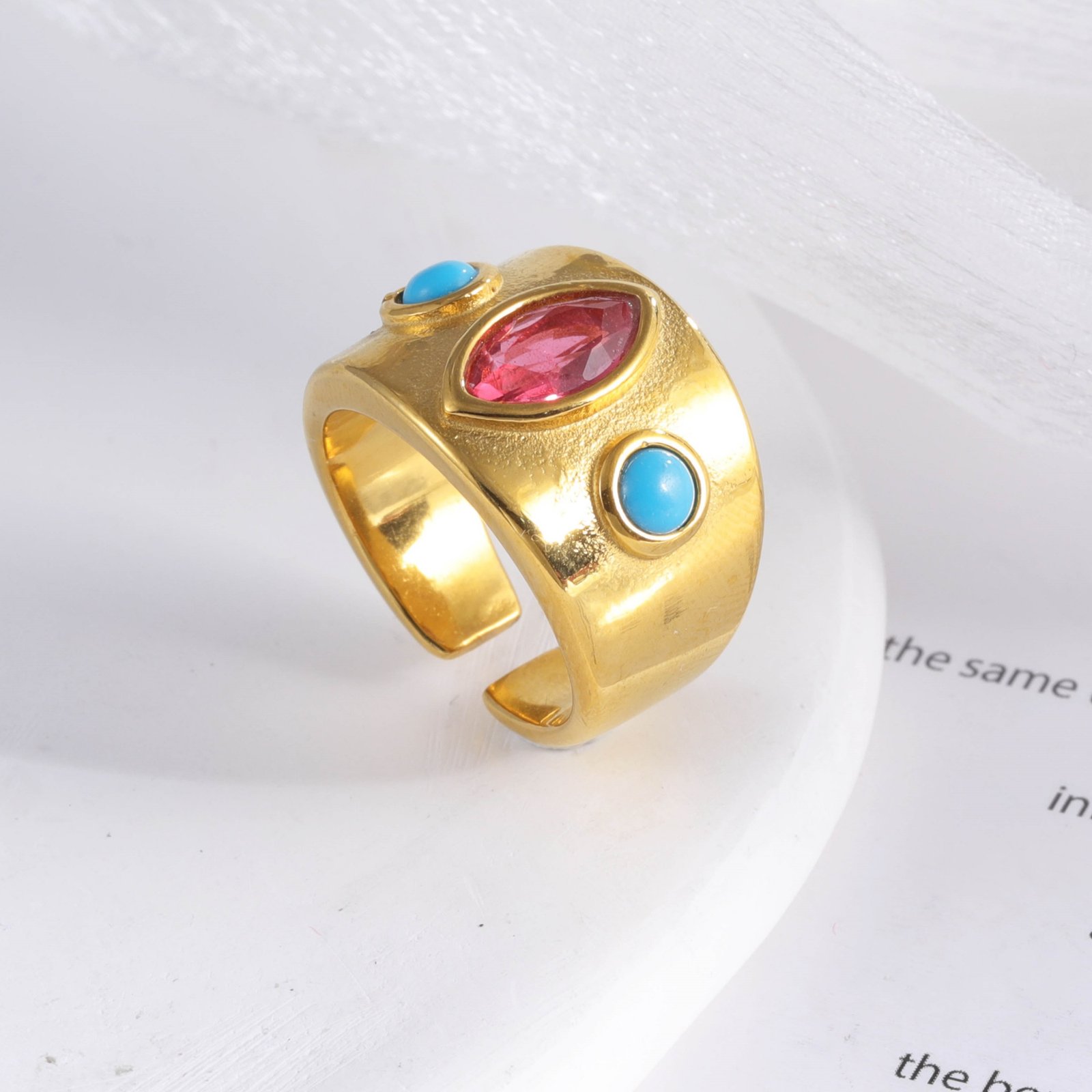 24K Gold-Plated Gem-Set Stainless Steel Unisex Waterproof Ring With Open Opening丨G003334