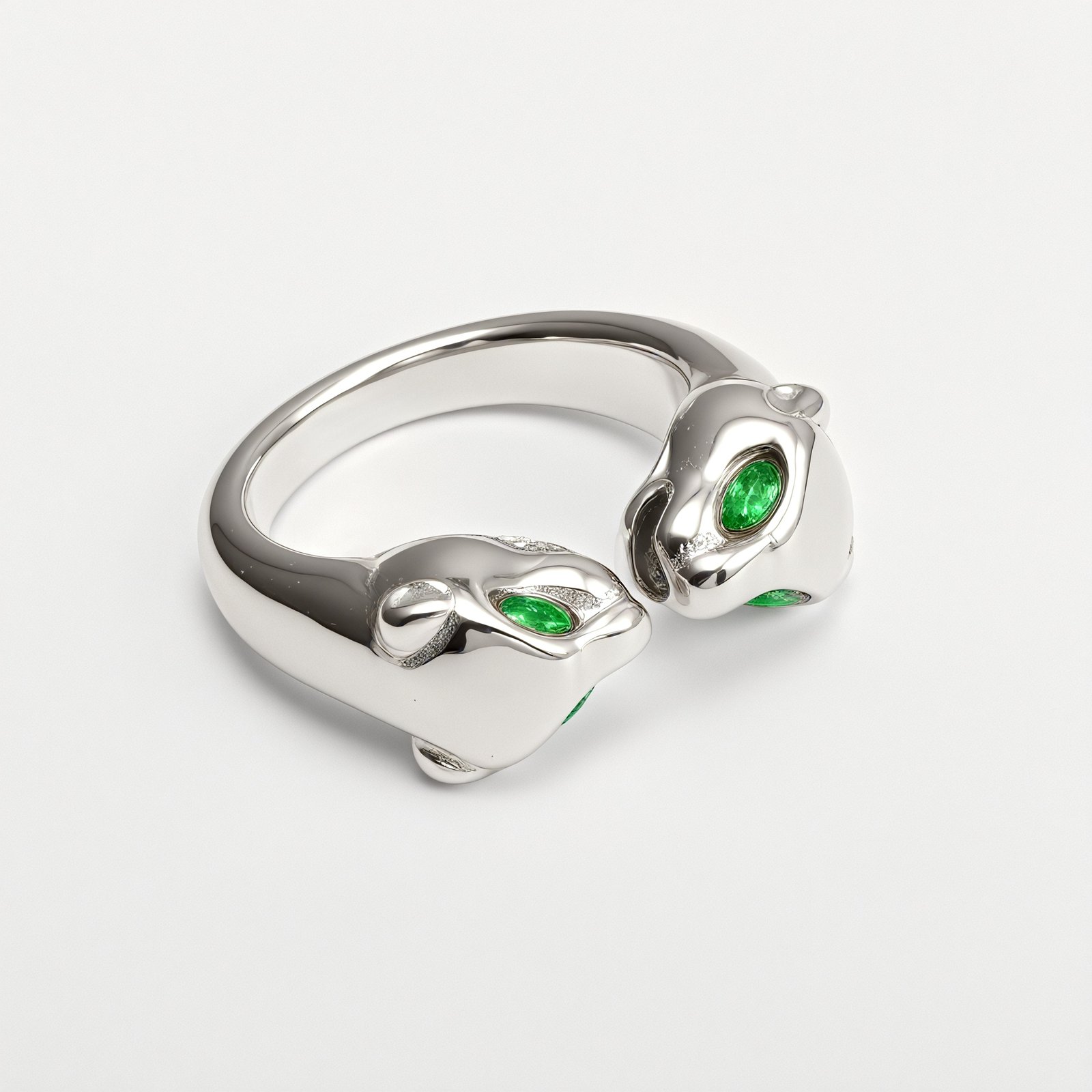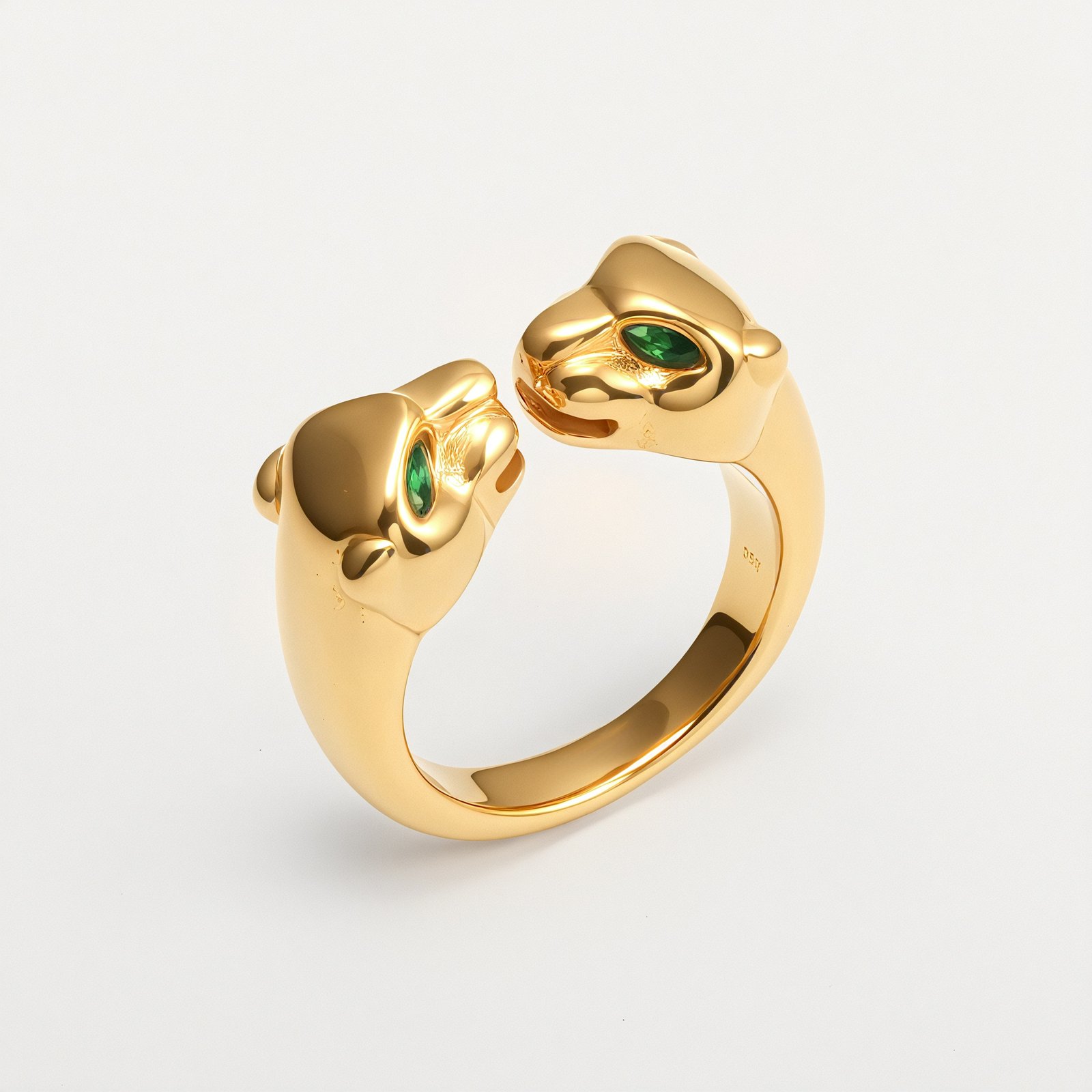 24K Gold Plated Stainless Steel Double – Panther Head Ring with Green Stones丨G006105