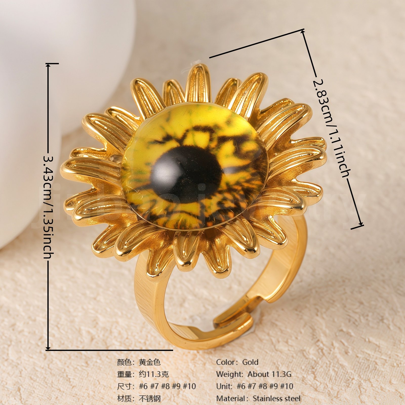 24K Gold-Plating Stainless Steel Colorful Eye Sunflower Trendy Women’s Waterproof Ring