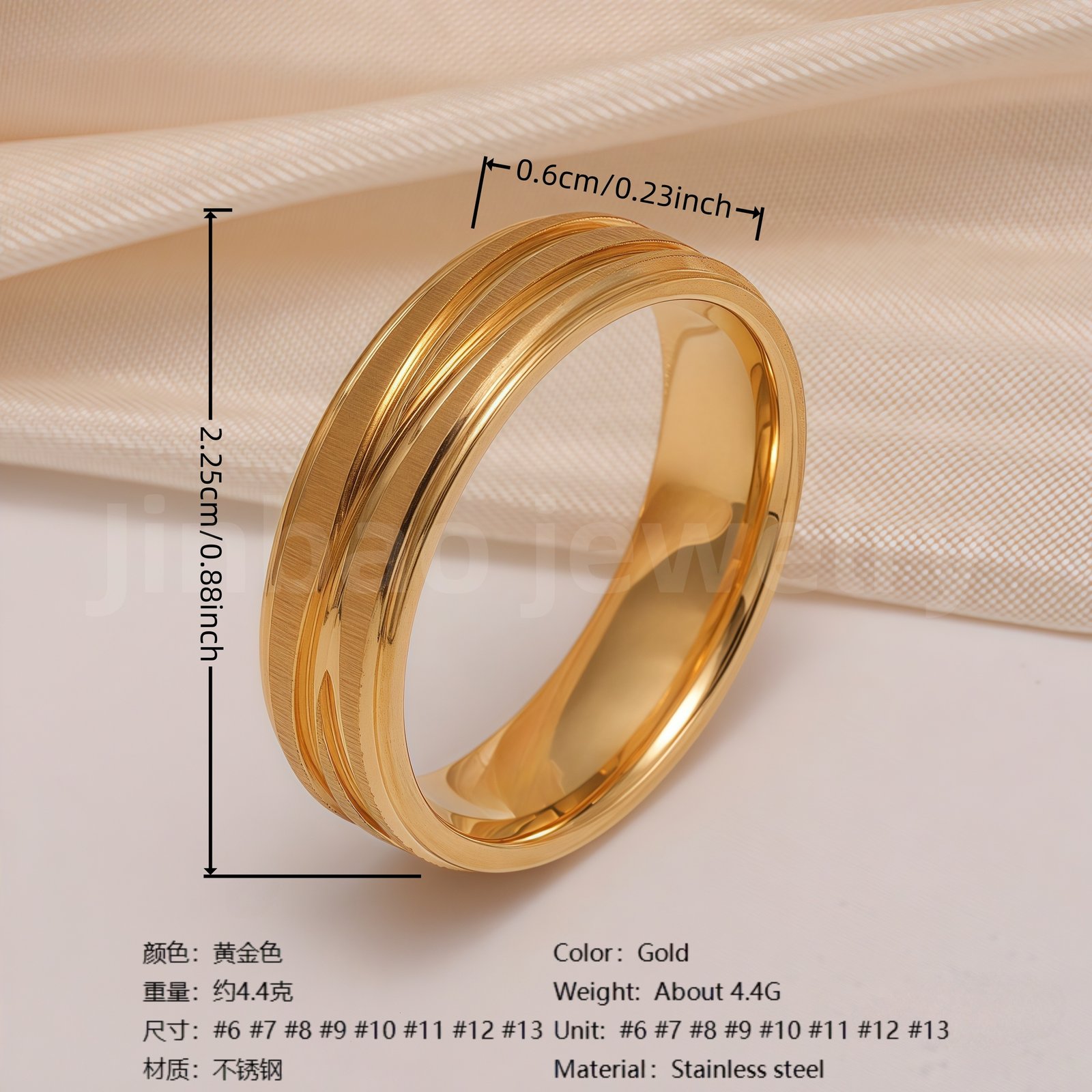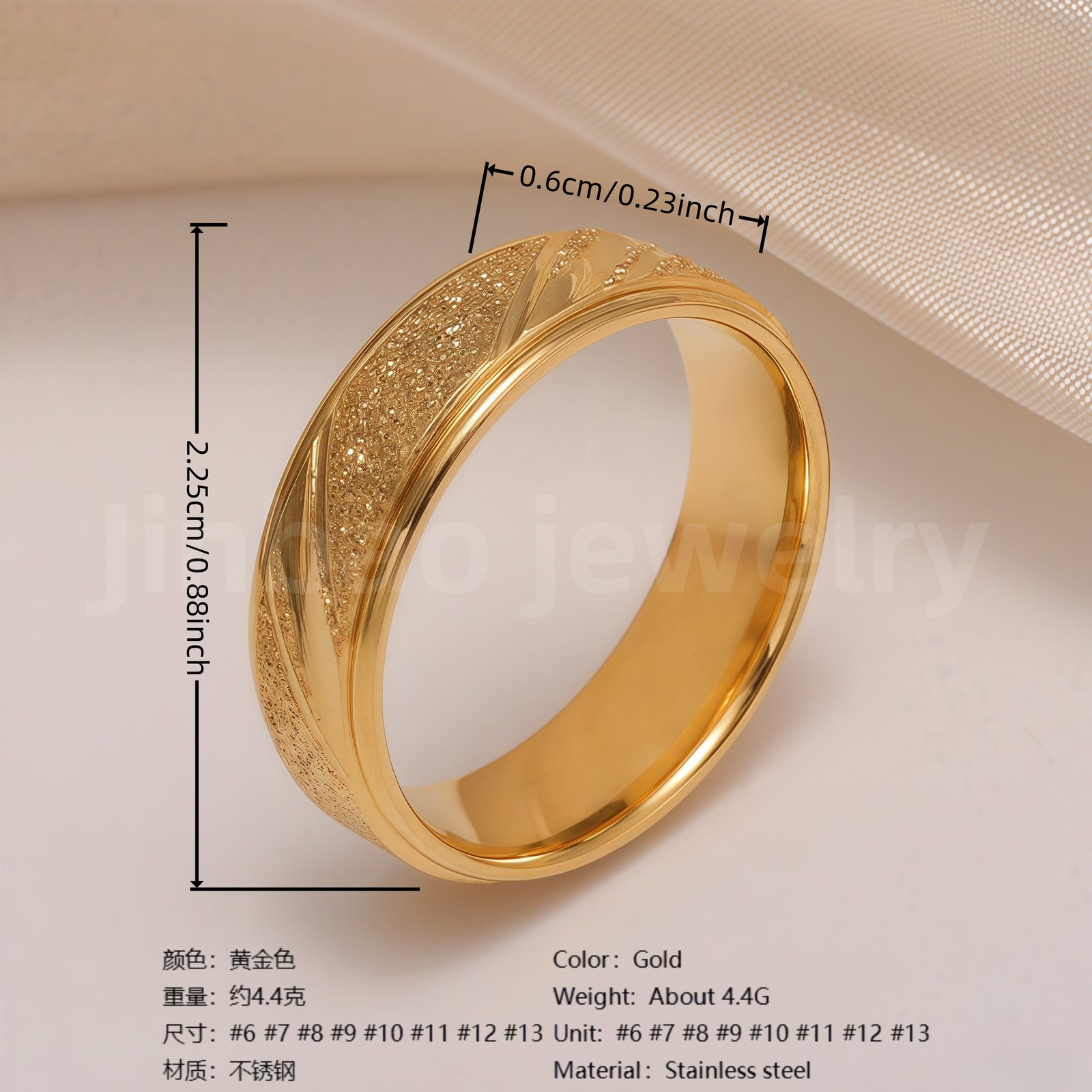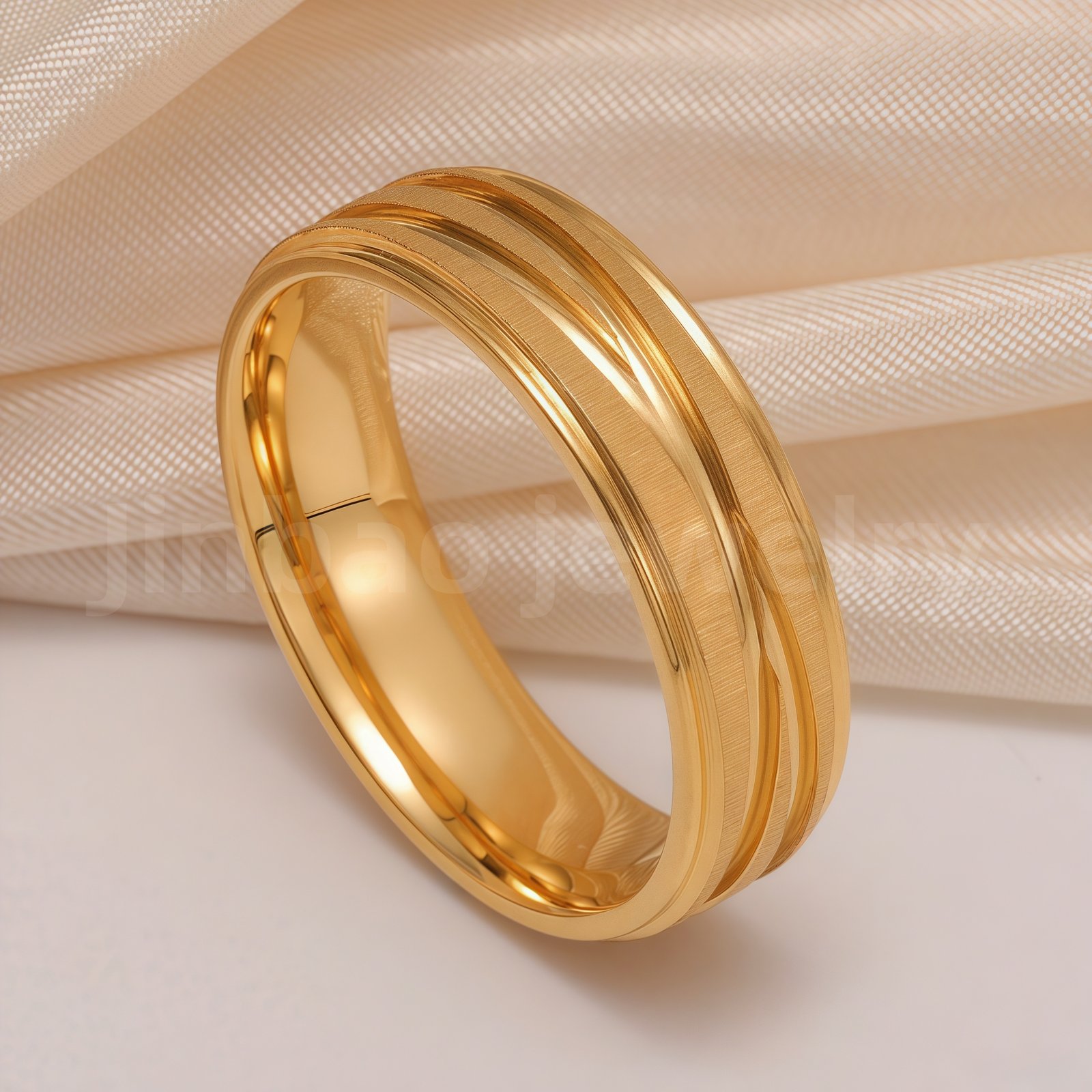 24K Gold-Plating Stainless Steel Minimalist Textured Trendy Men’s Waterproof Ring 6MM