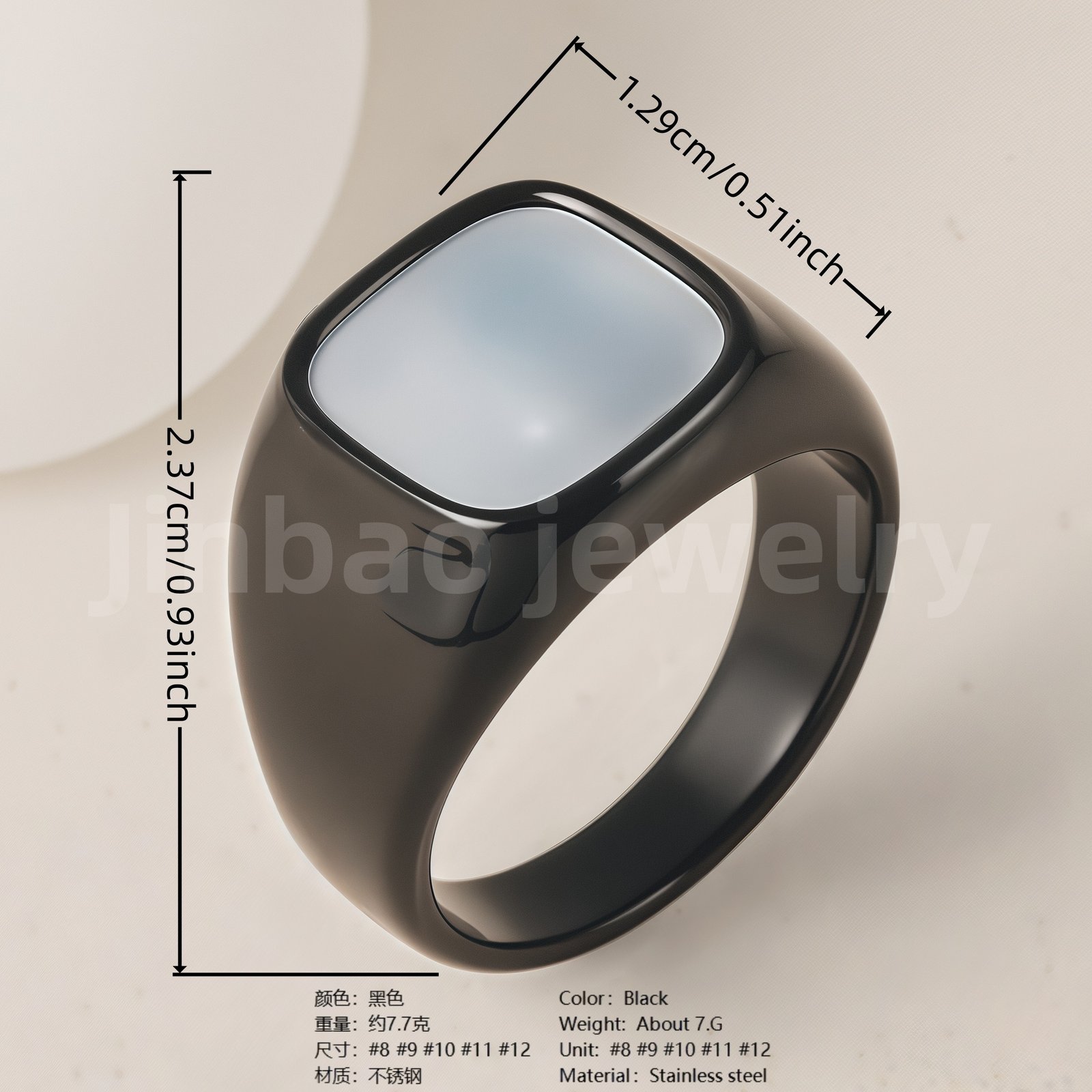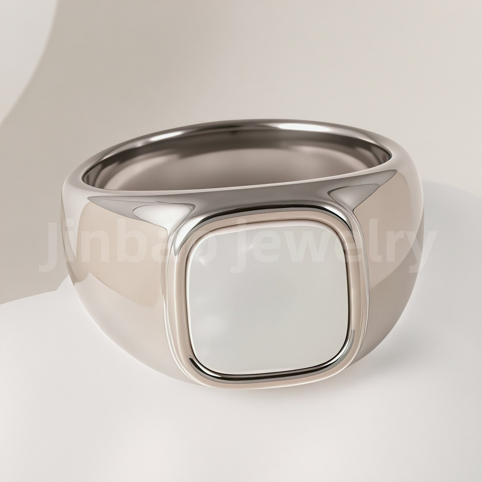 24K Gold PVD Stainless Steel Titanium Minimalist Mother of Pearl Signet Men’s Ring