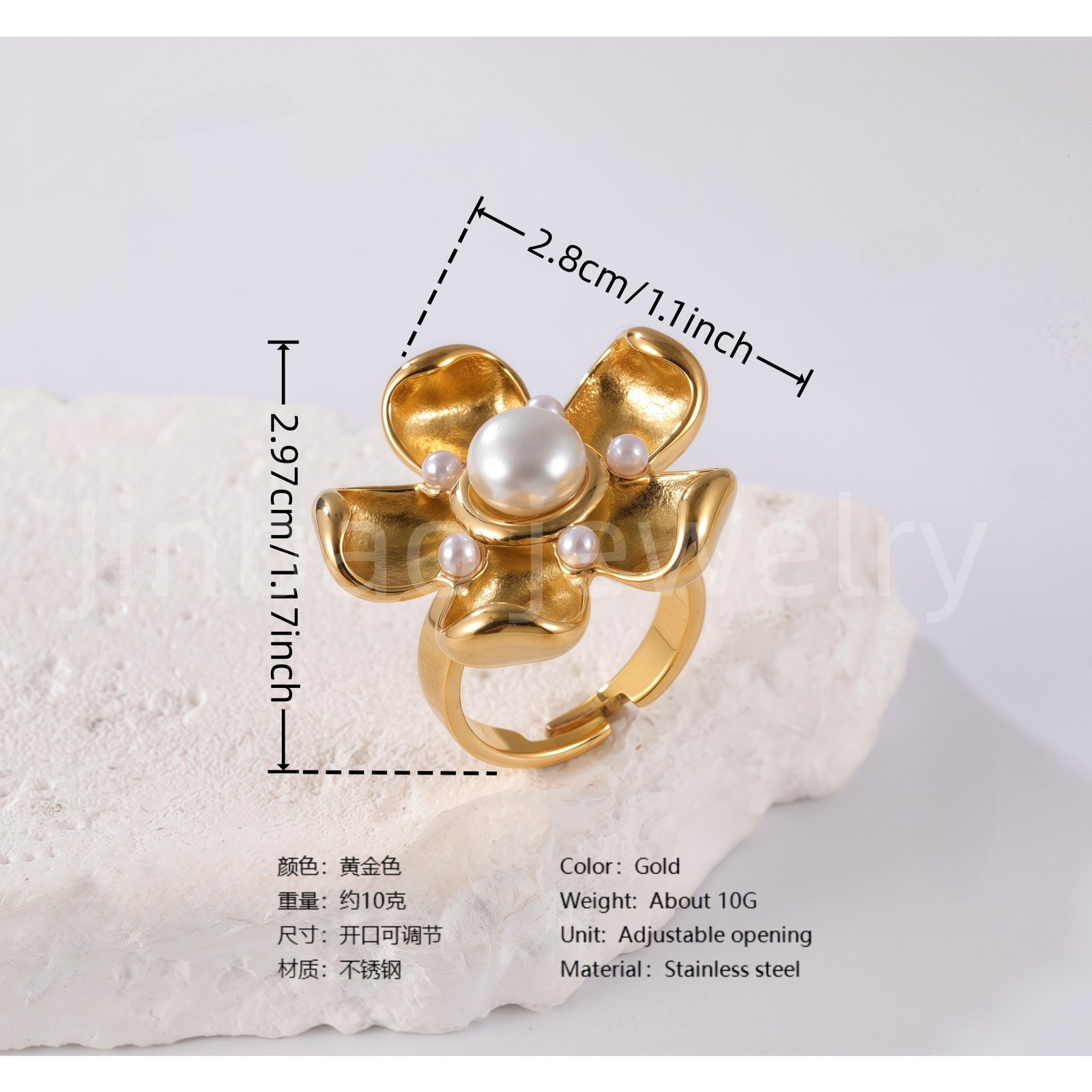 24K Gold PVD Stainless Steel Titanium Pearl Blossom Women’s Ring