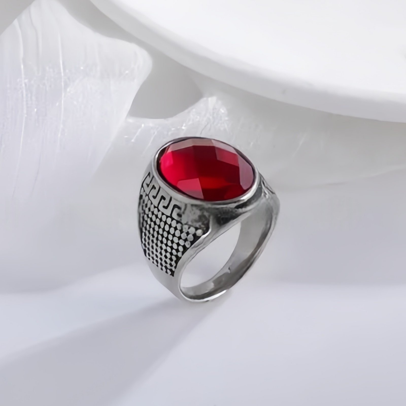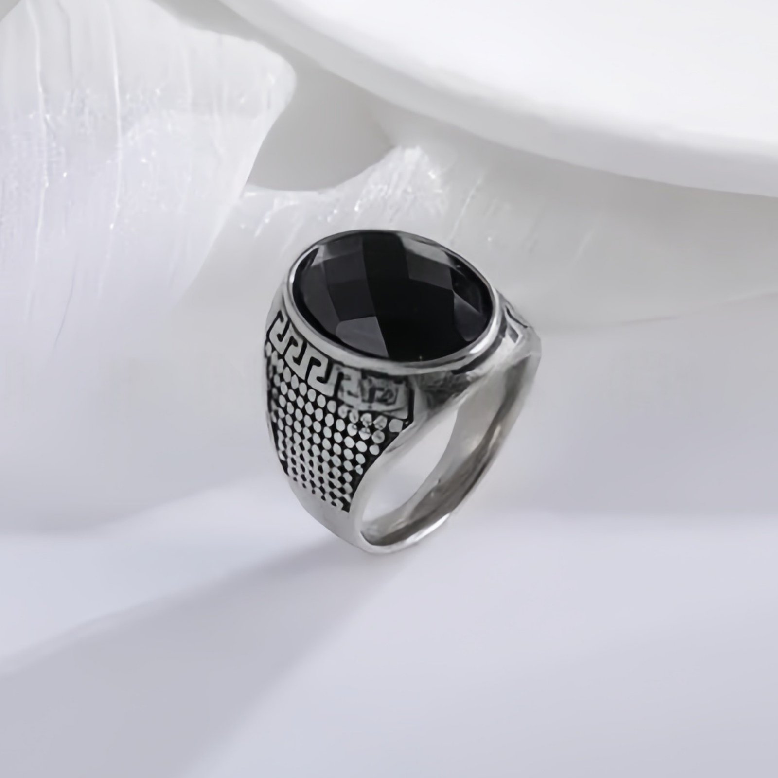 Vintage Geometric Pattern Gemstone Stainless Steel Men’s Ring | BL40