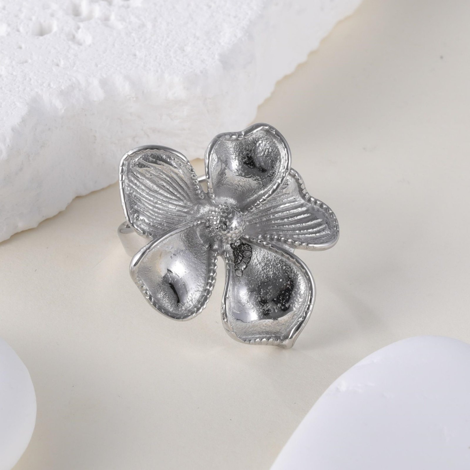 Elegant Flower Design Exquisite Female Stainless Steel Waterproof Ring丨G005765