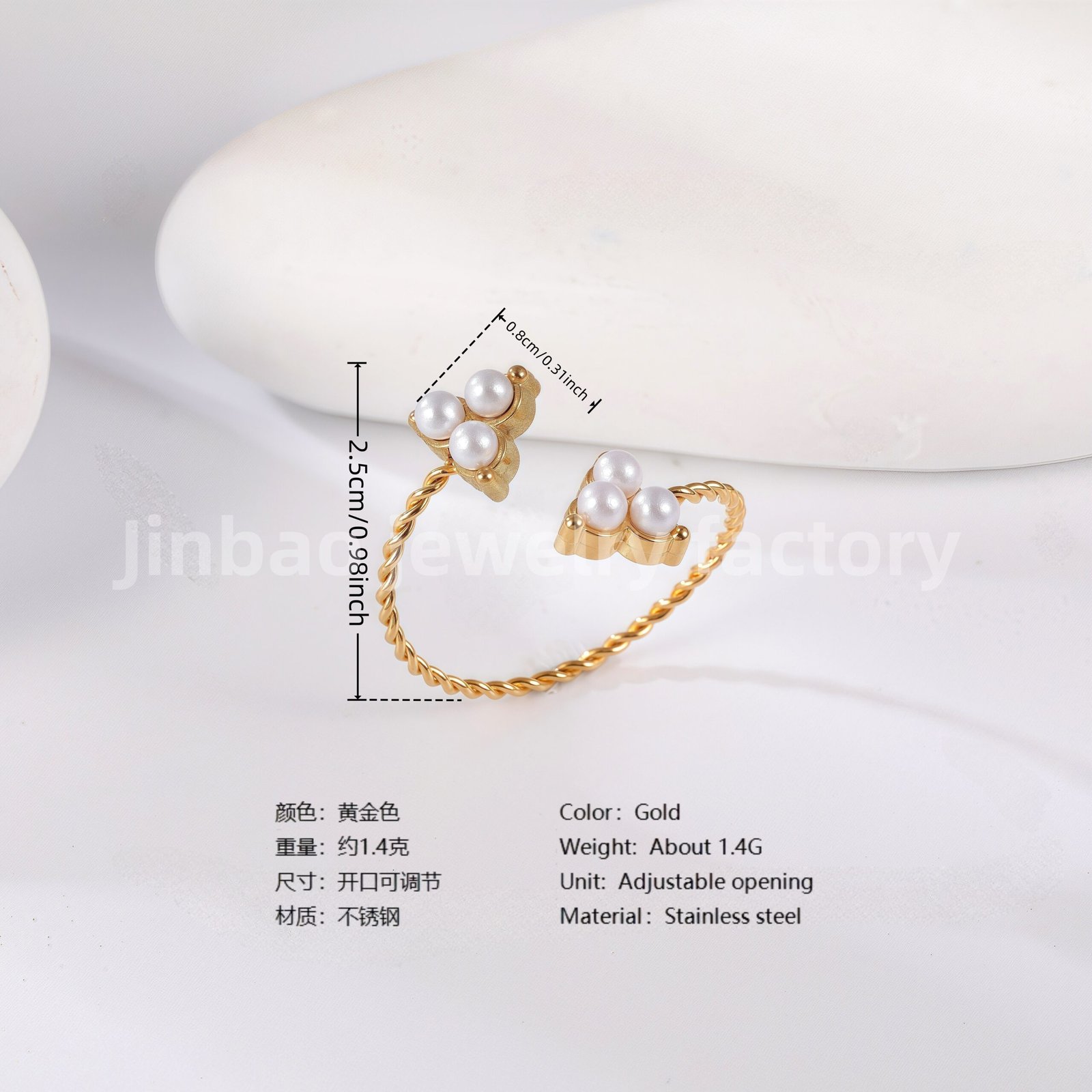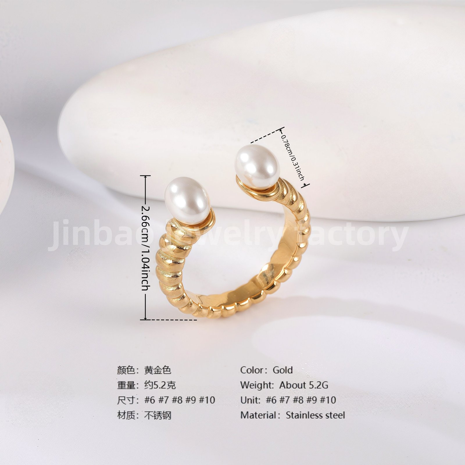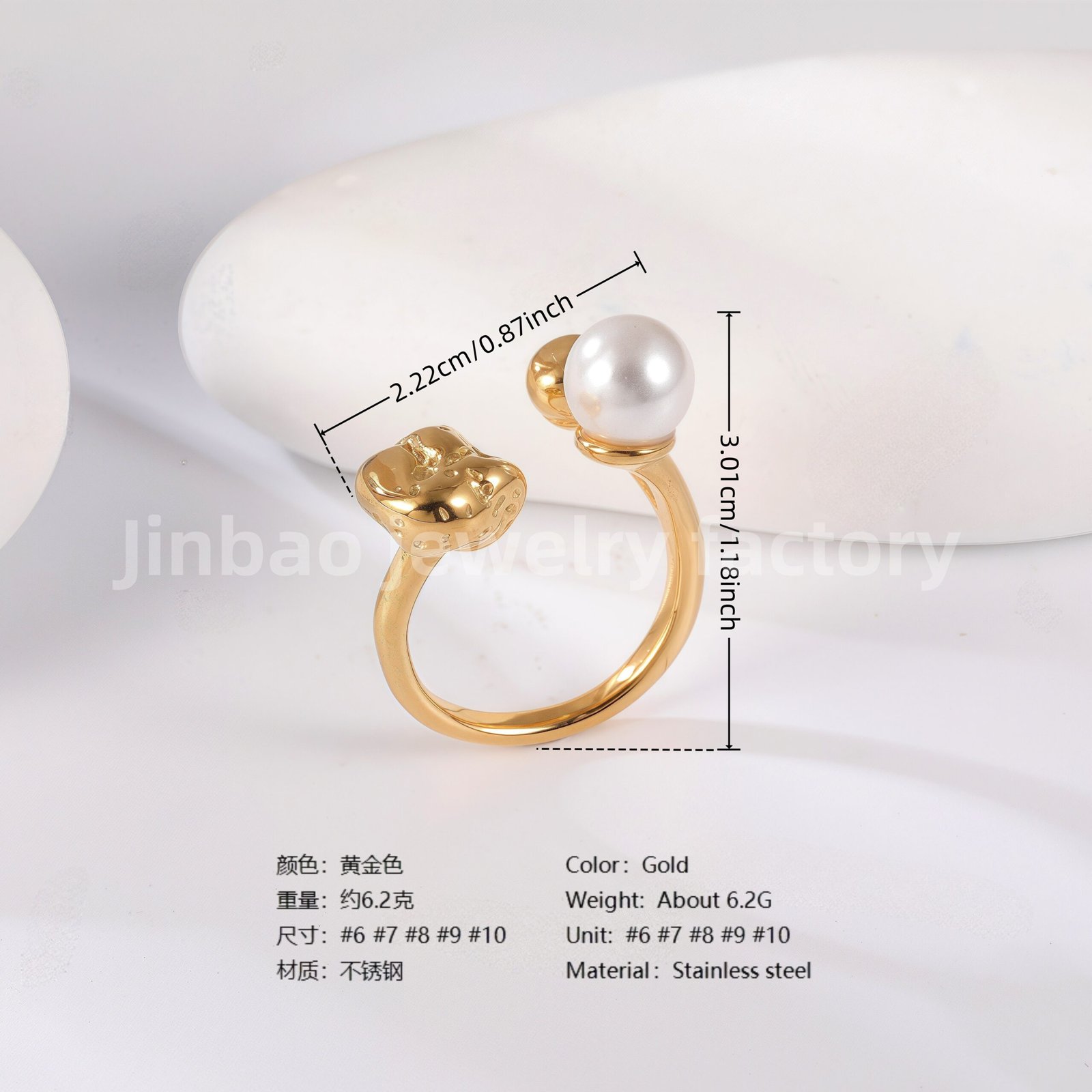 24K Gold PVD Stainless Steel Titanium Elegant Pearl Women’s Ring