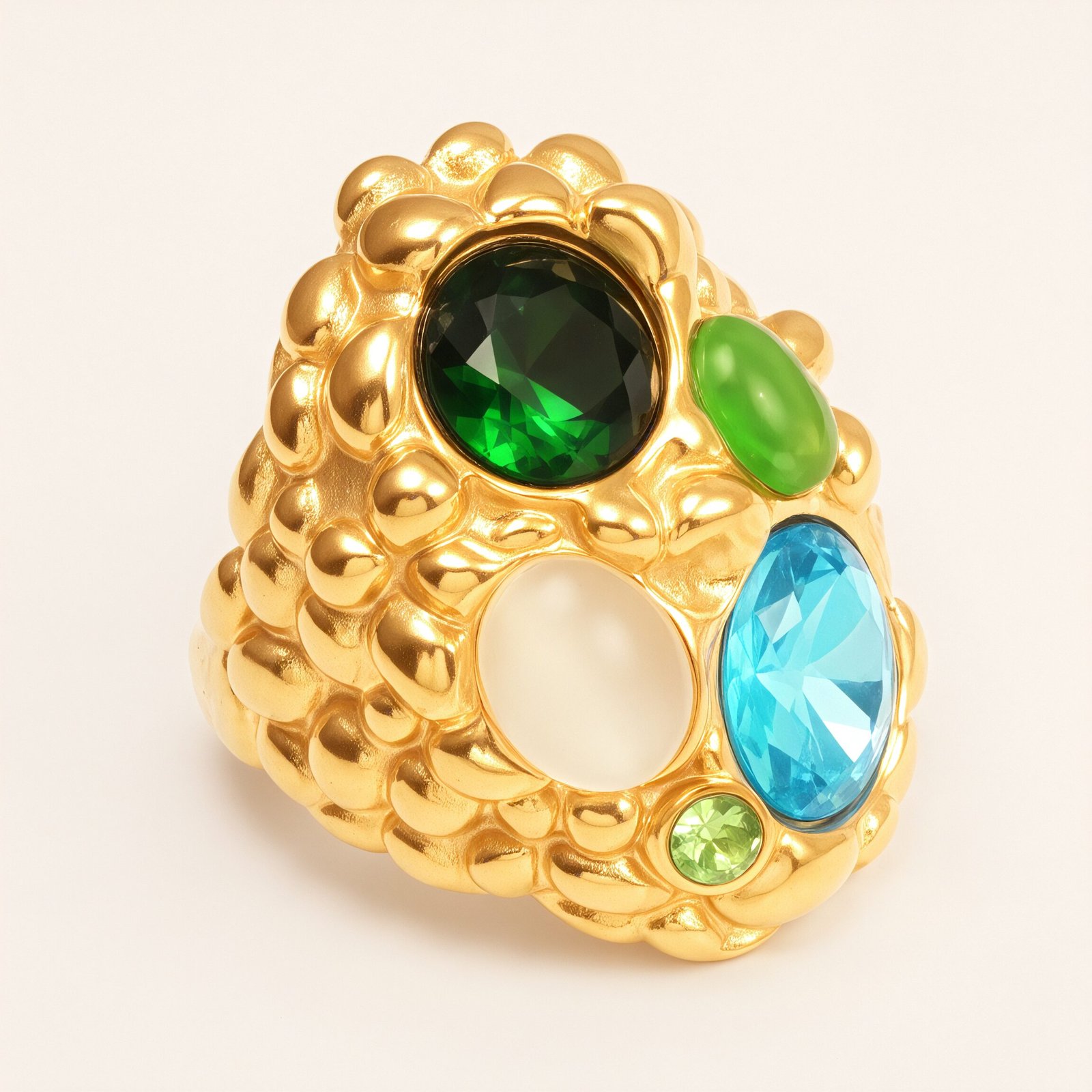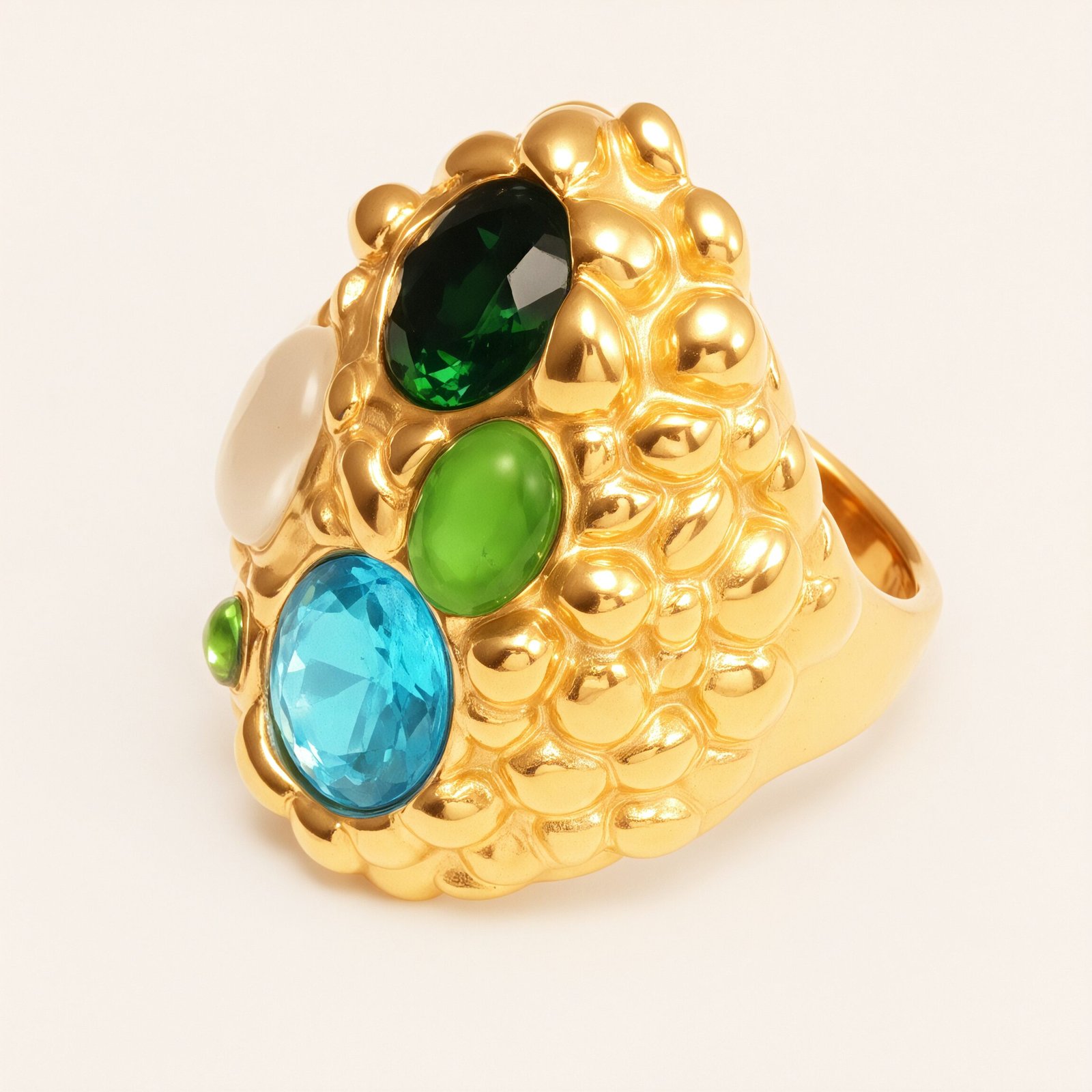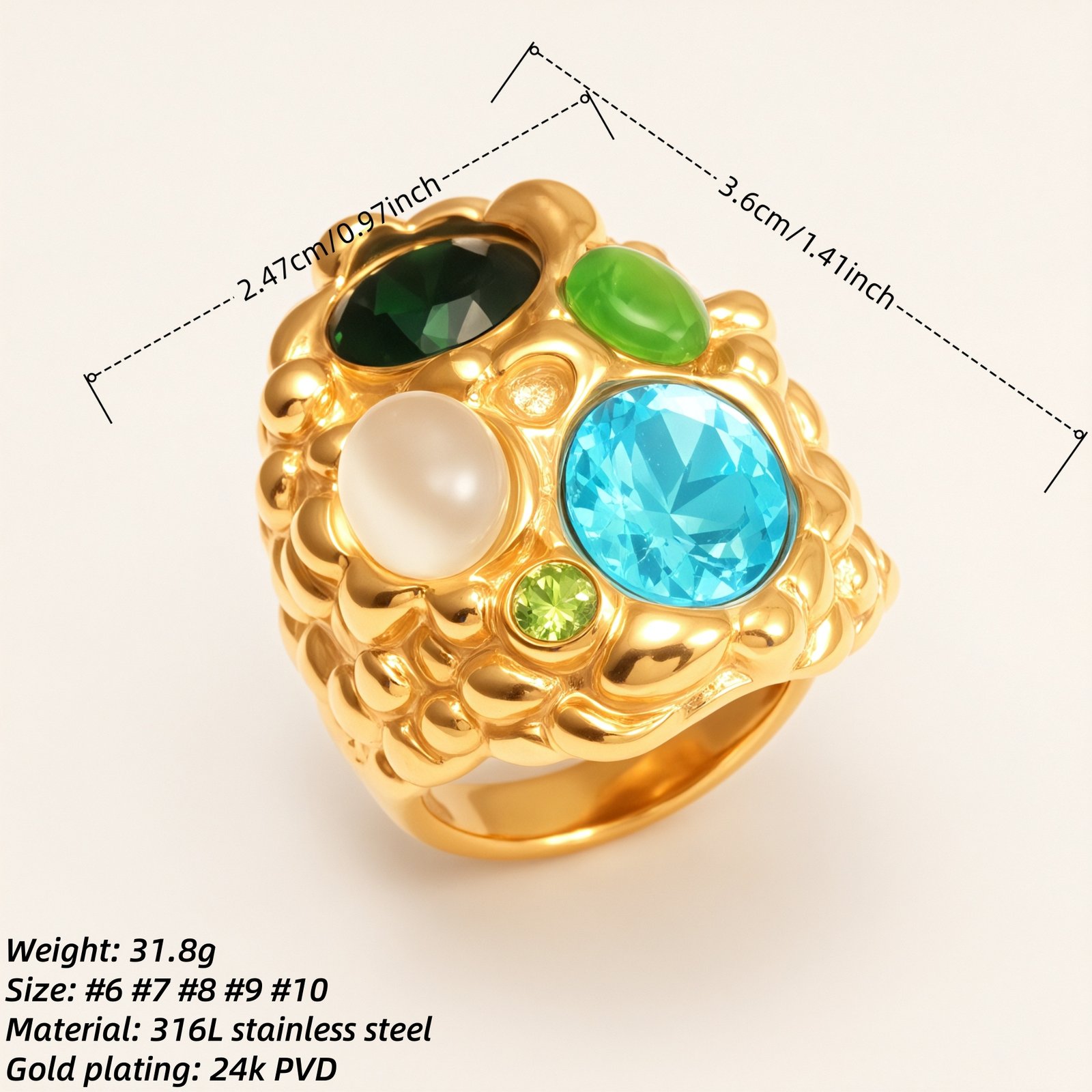 Elegant Women’s Gold – colored Stainless Steel Ring Inlaid with Multiple Gemstones | G004508