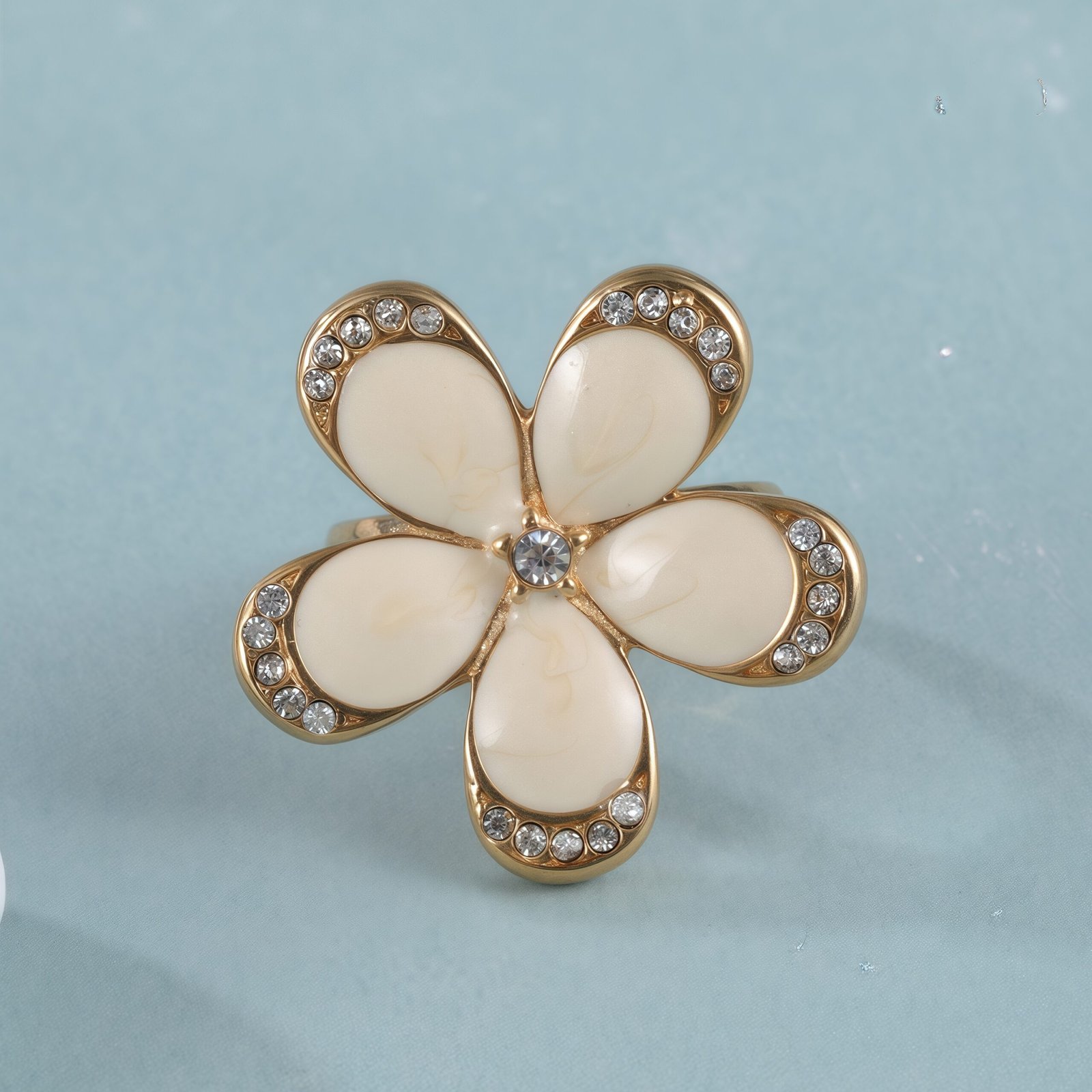 Fashion Flower Creative Design Diamond-Encrusted Stainless Steel Women’s Ring丨C-310J