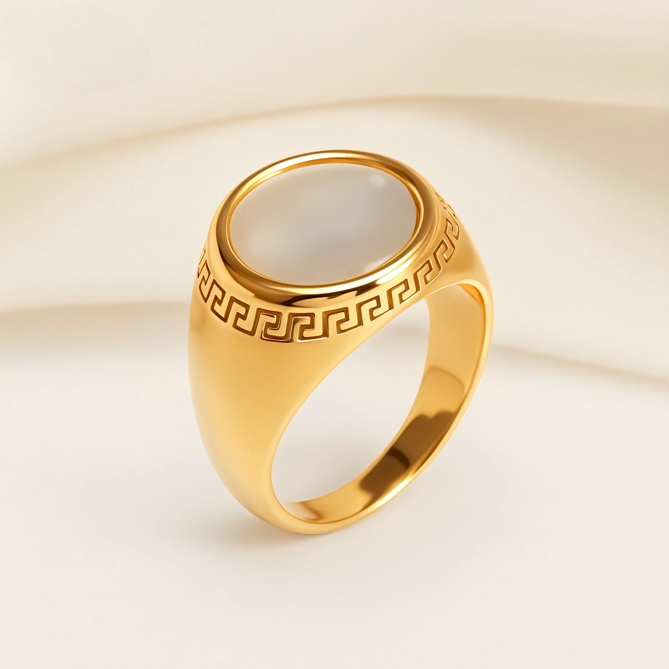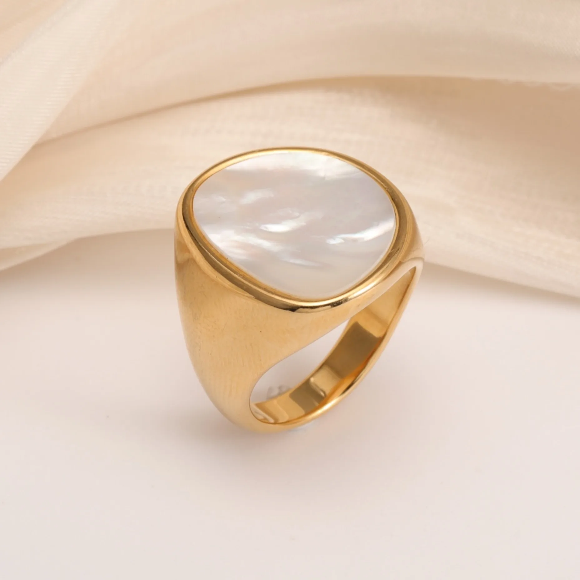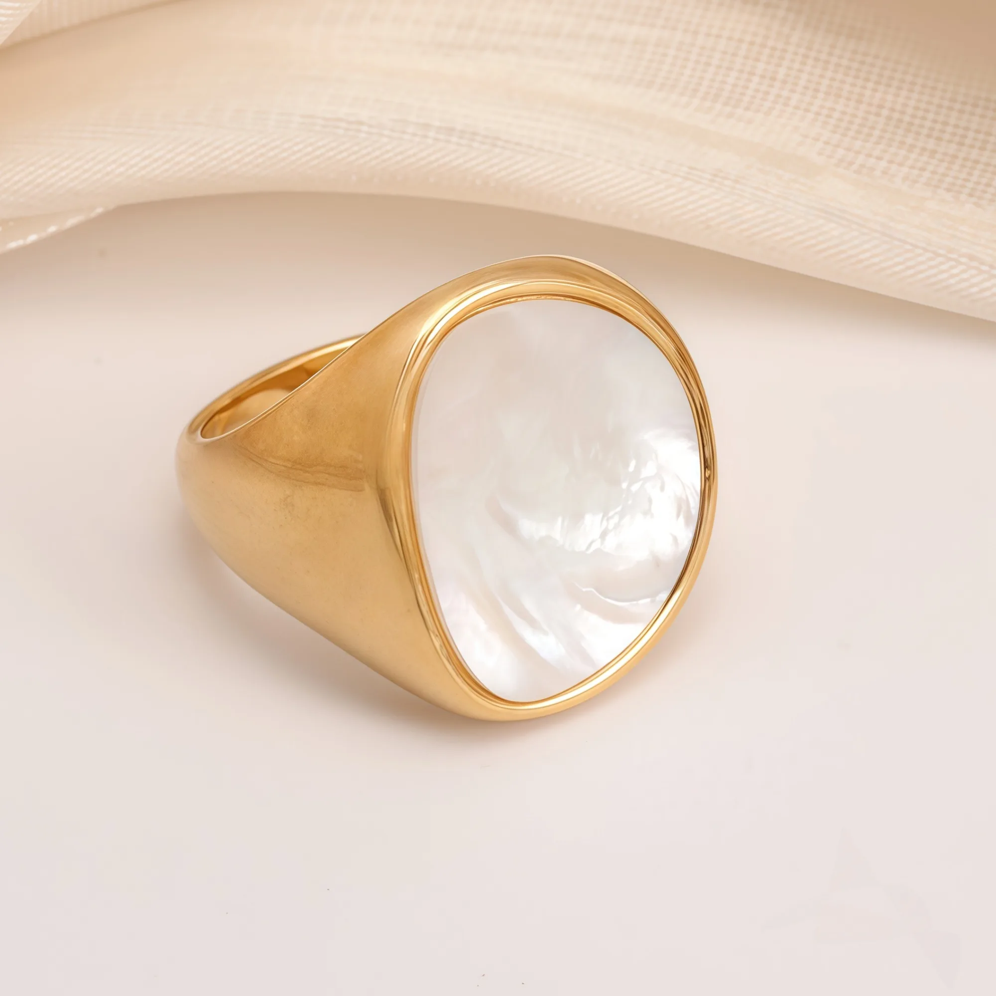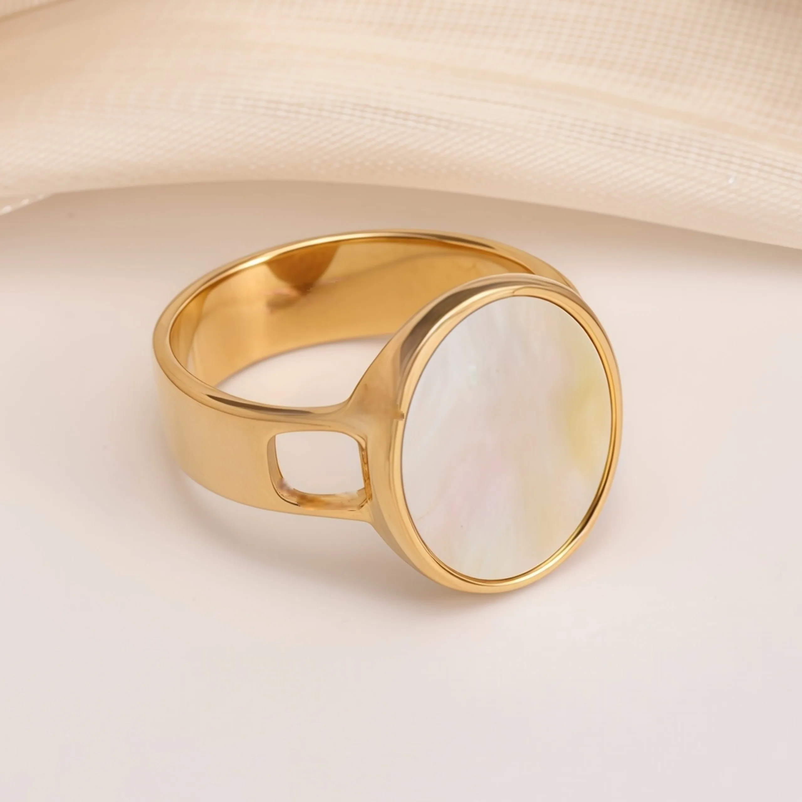 Fashionable Gold – Mother – of – Pearl Ring – Eye – Catching Accessory for Stylish Outfits