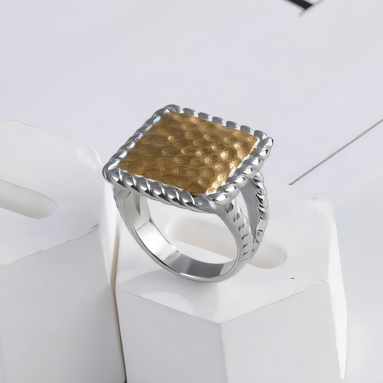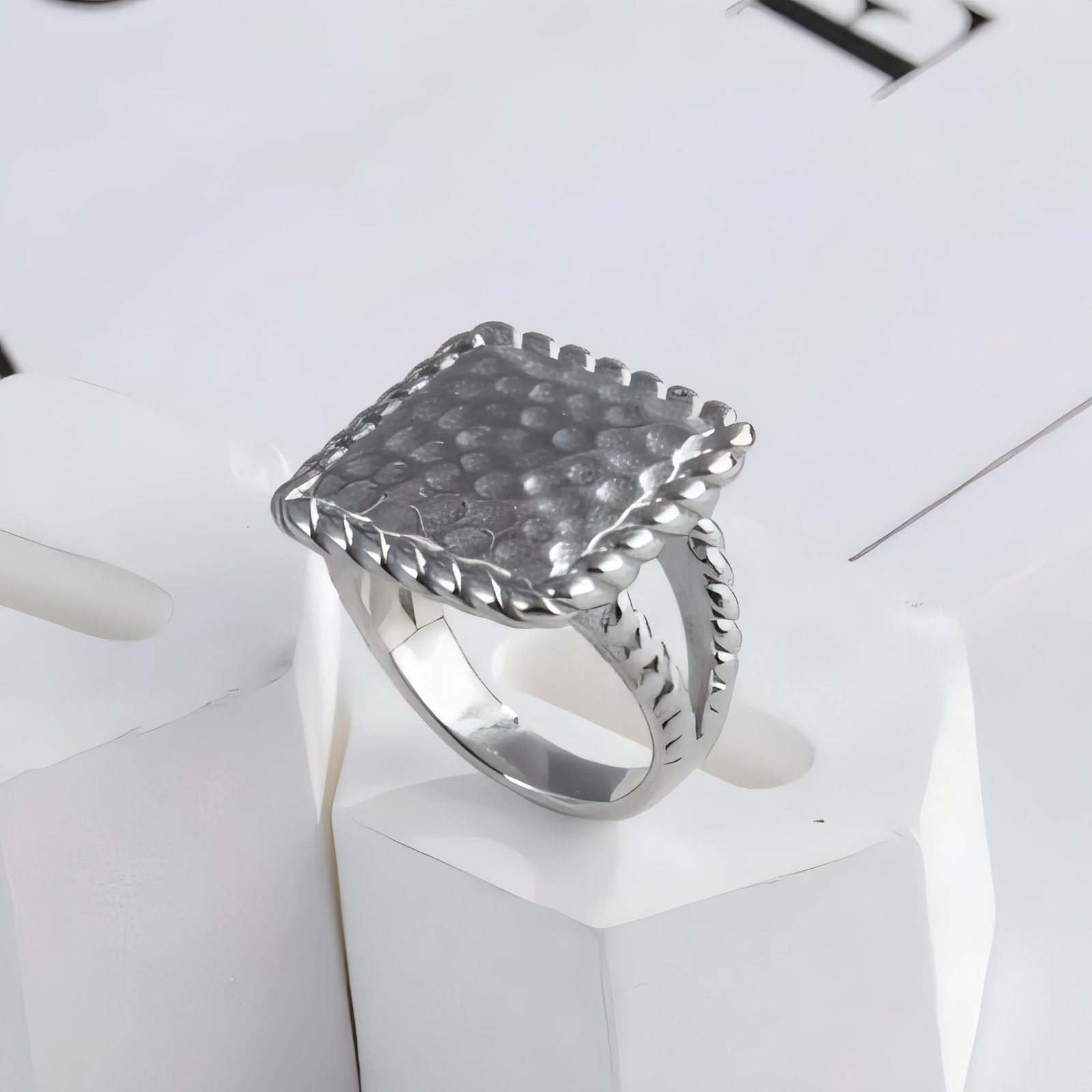 Modern Square Hammered Stainless Steel Ring Simple and Fashionable for Women | G003406