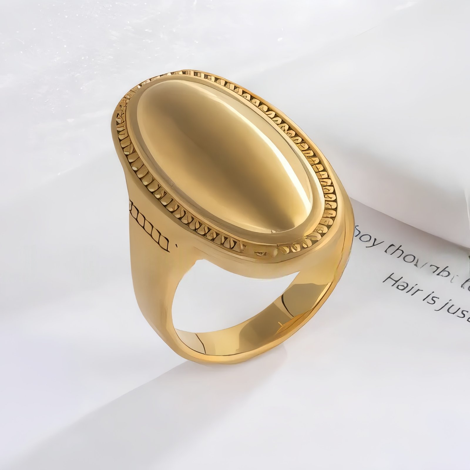 Elegant Oval Ring Women’s Two-Tone Gold & Silver Stainless Steel Ring | G003417