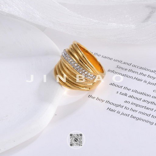 Wavy Design Diamond Inlay Ring Women’s Fashion Gold Stainless Steel Band | G003860