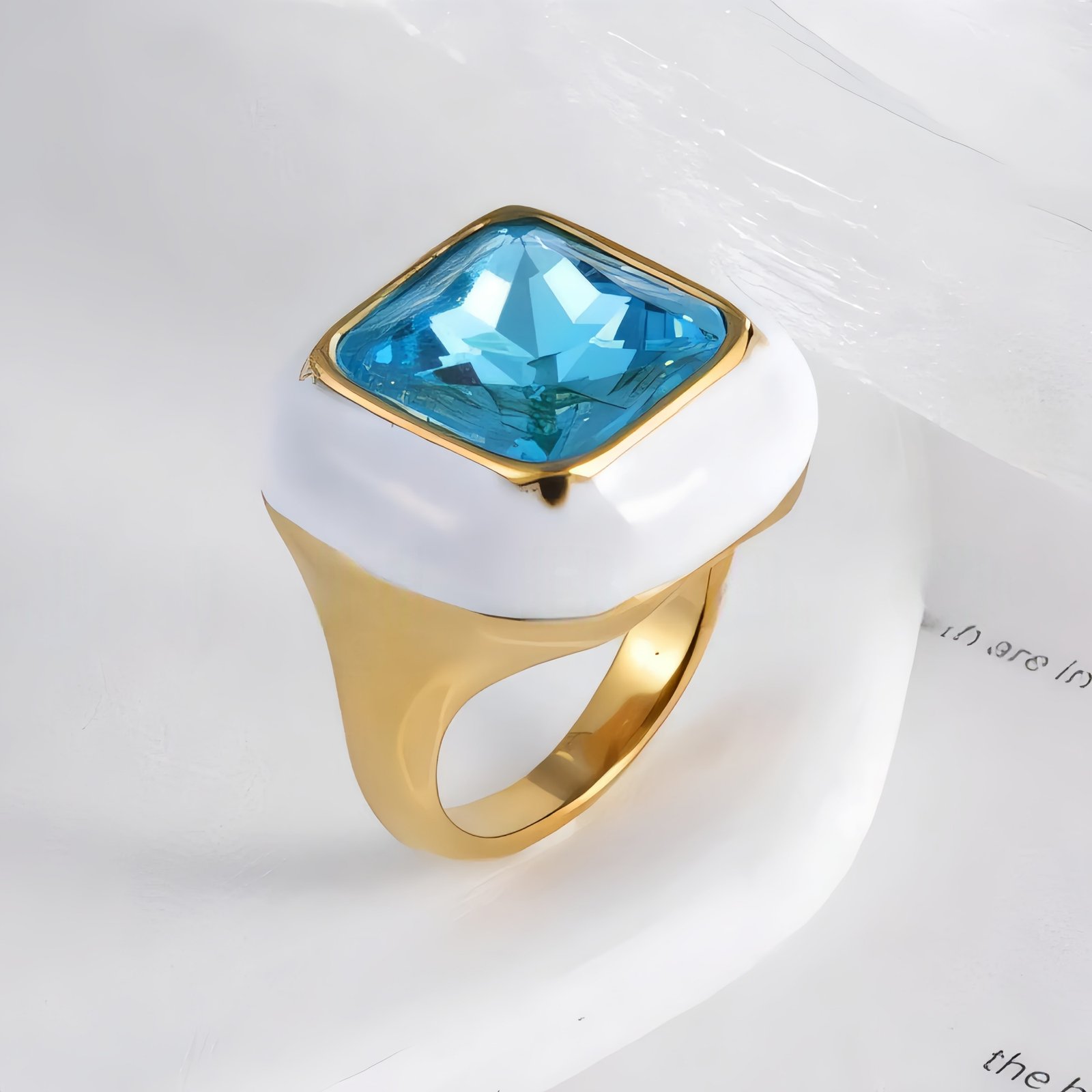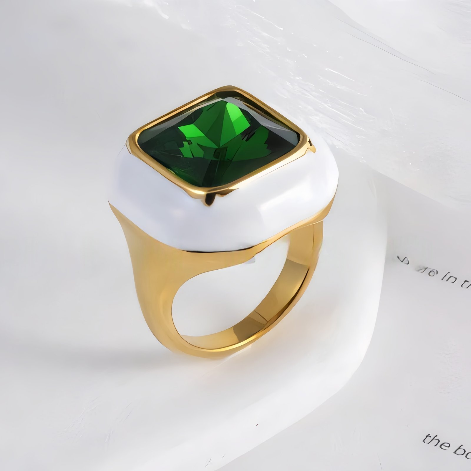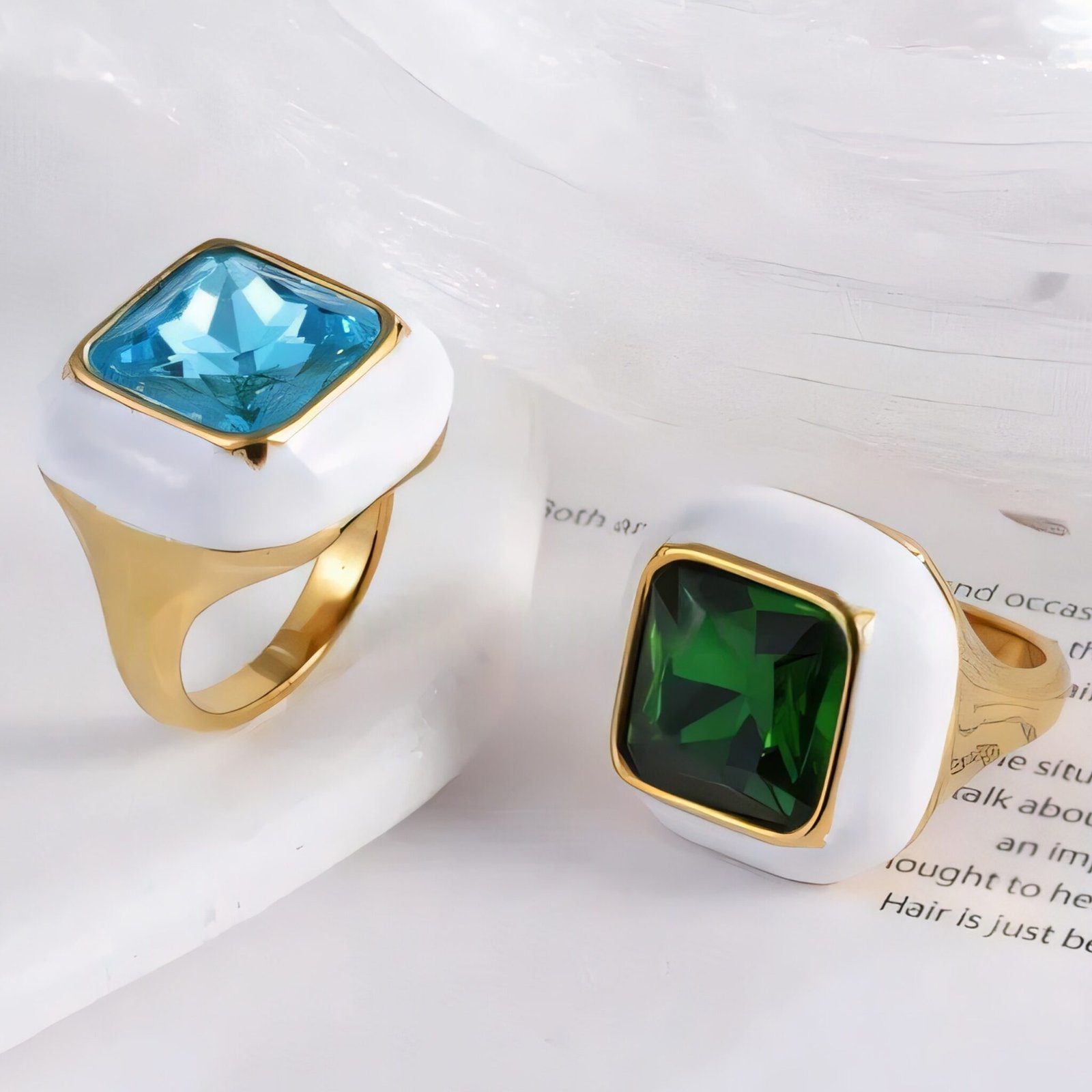 Luxurious Square Gemstone Stainless Steel Ring Modern Simple Style Women Ring | G004464