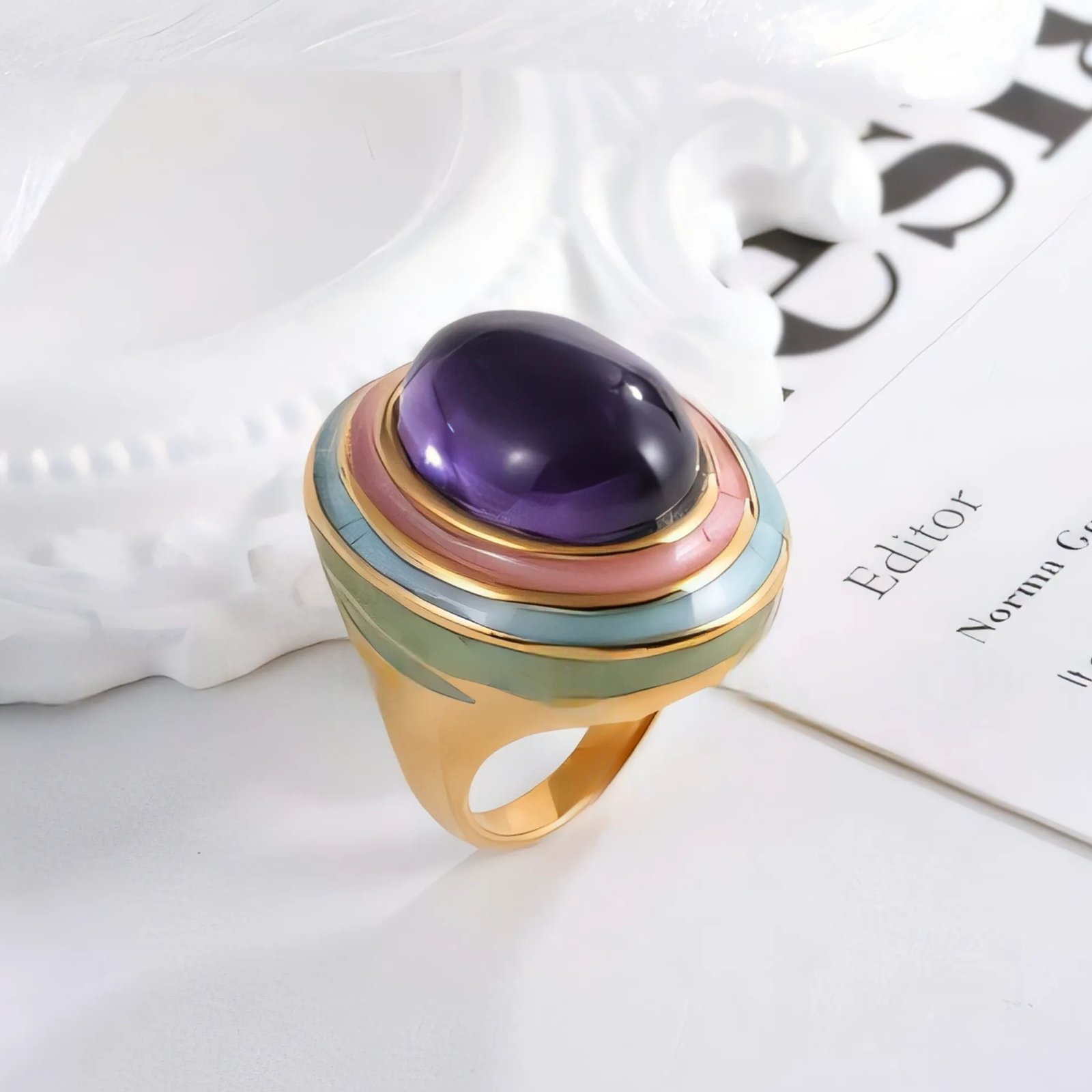 Elegant Multilayer Gemstone Decorative Stainless Steel Ring Women’s Ring | G004470