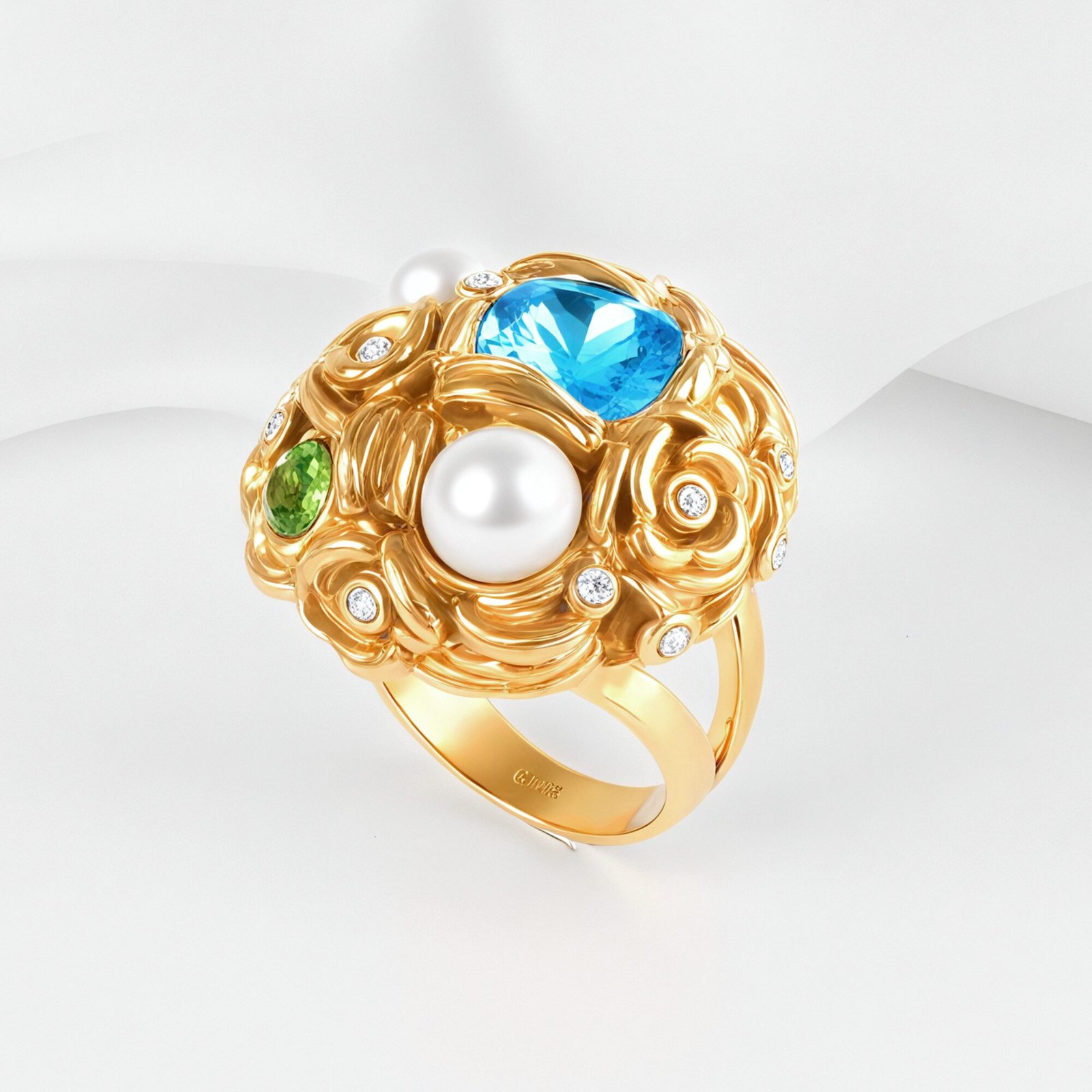 Floral Pearl Gemstone Inlaid Classic Fashion Stainless Steel Women’s Ring | G004570