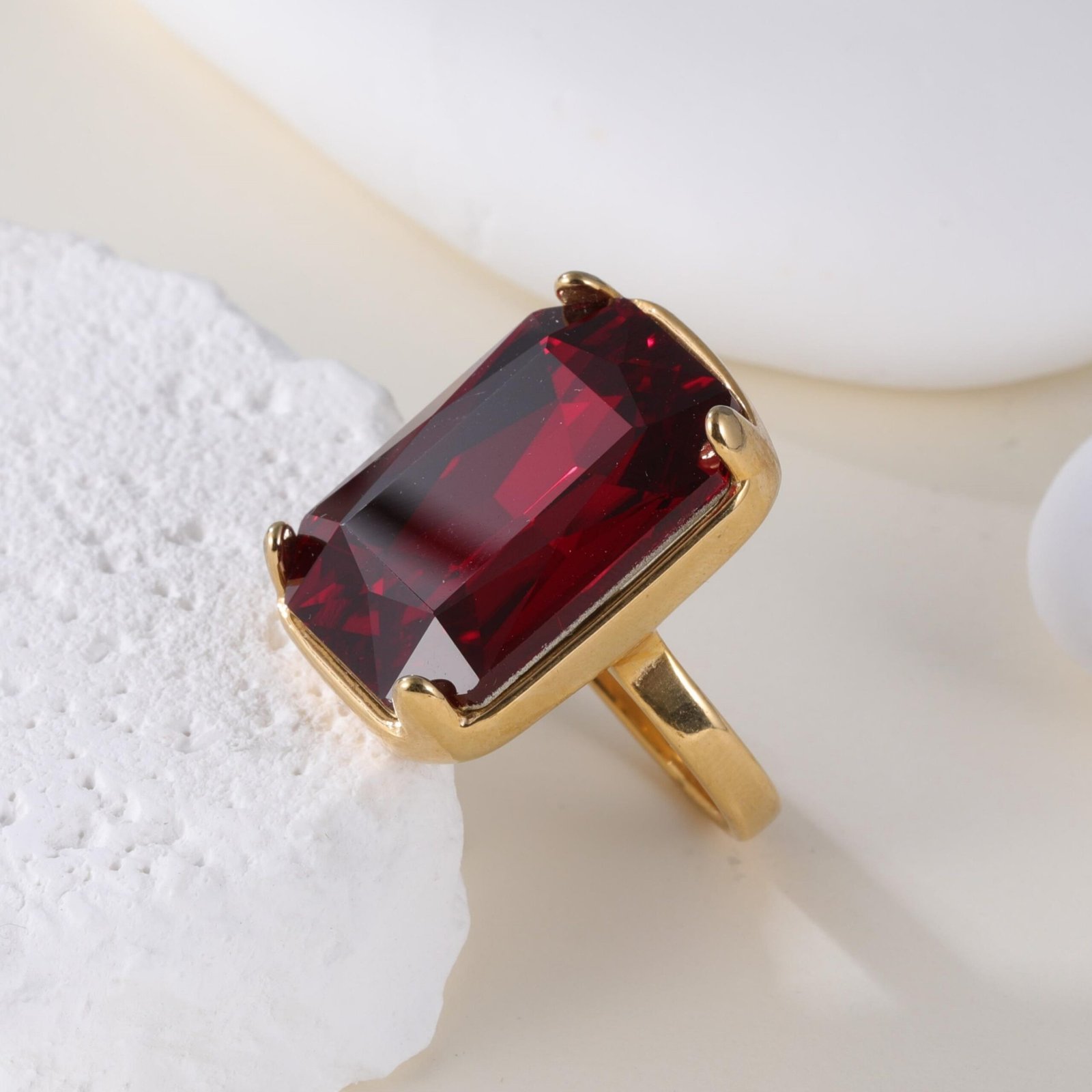 Gemstone Simple Square Design Stainless Steel Women’s Ring丨K002810