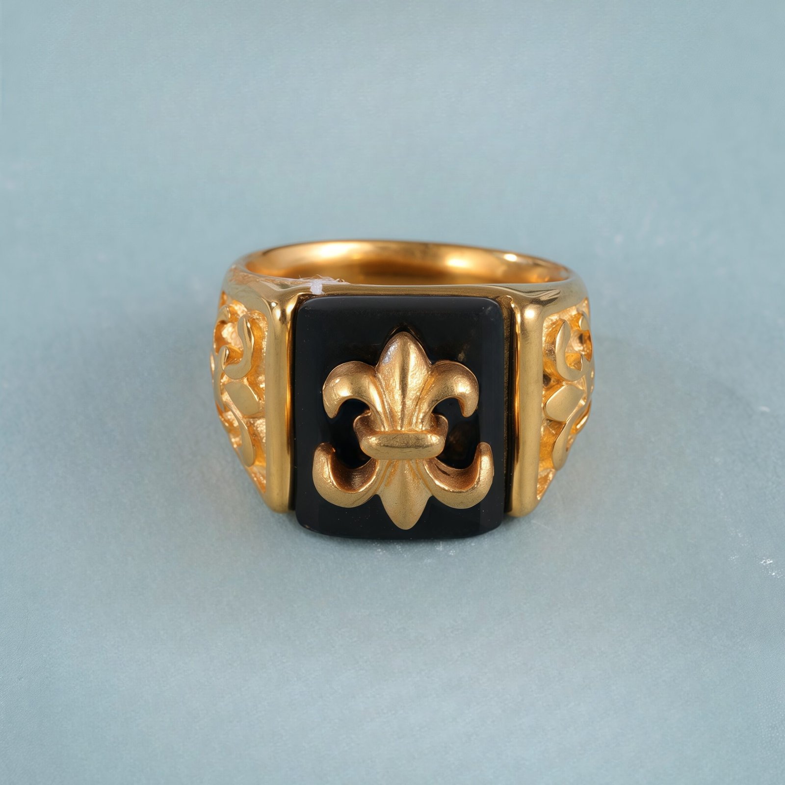 Gold Stainless Steel Ring with Black Gemstone and Cross Carving, Classic Vintage Style, Perfect Fashion Ring for Men, Ideal Gift