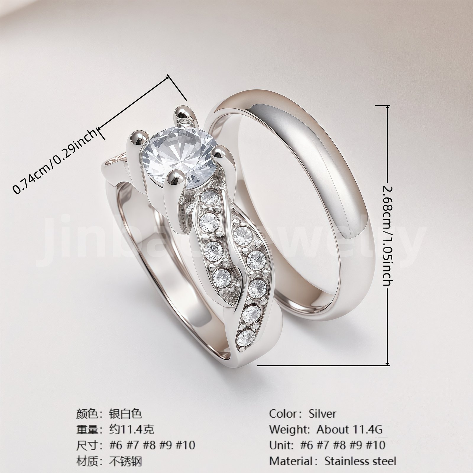 High Quality Exquisite Diamond – Row Stainless Steel Wedding Rings