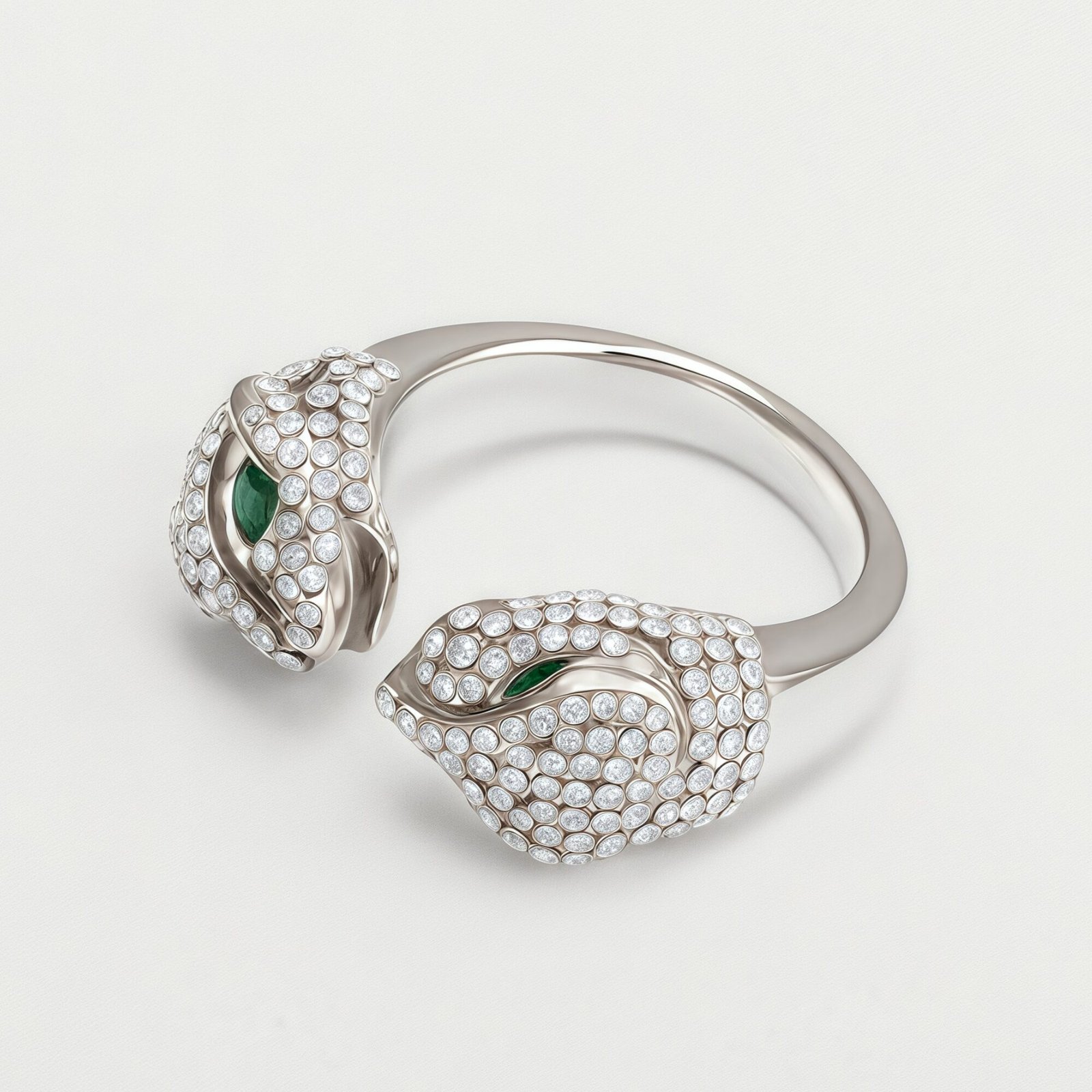 Luxury Leopard Inlay Emerald Diamond Stainless Steel Unisex Ring丨G002495JB