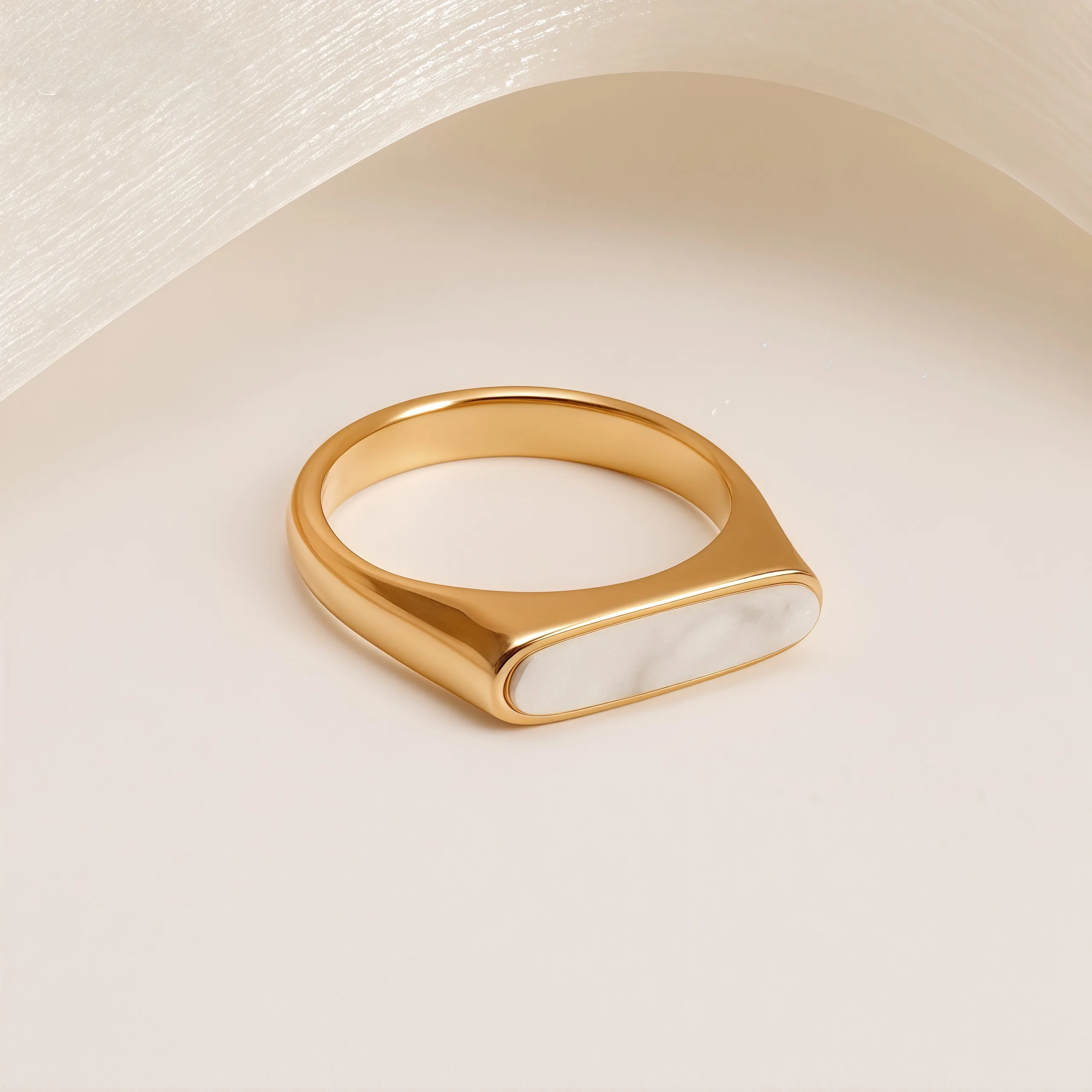 Metallic Texture Mother – of – Pearl Ring Set – Trendy and Versatile Unisex Accessory