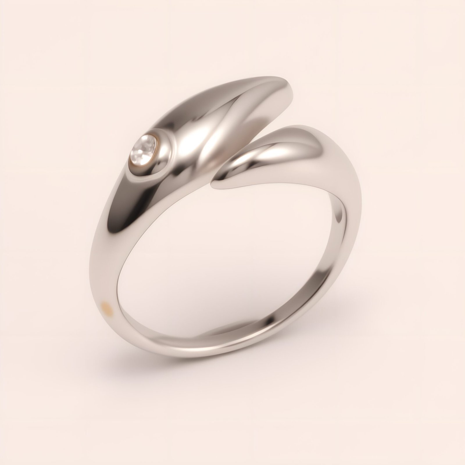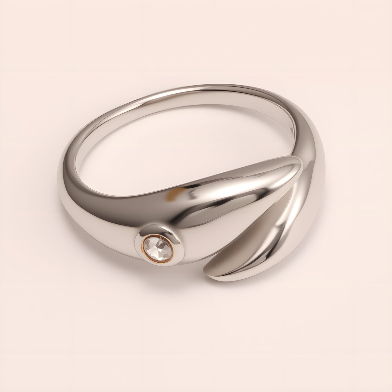 Minimalist Diamond – Set Streamlined Stainless Steel Ring – Trendy & Versatile Jewelry | G004275