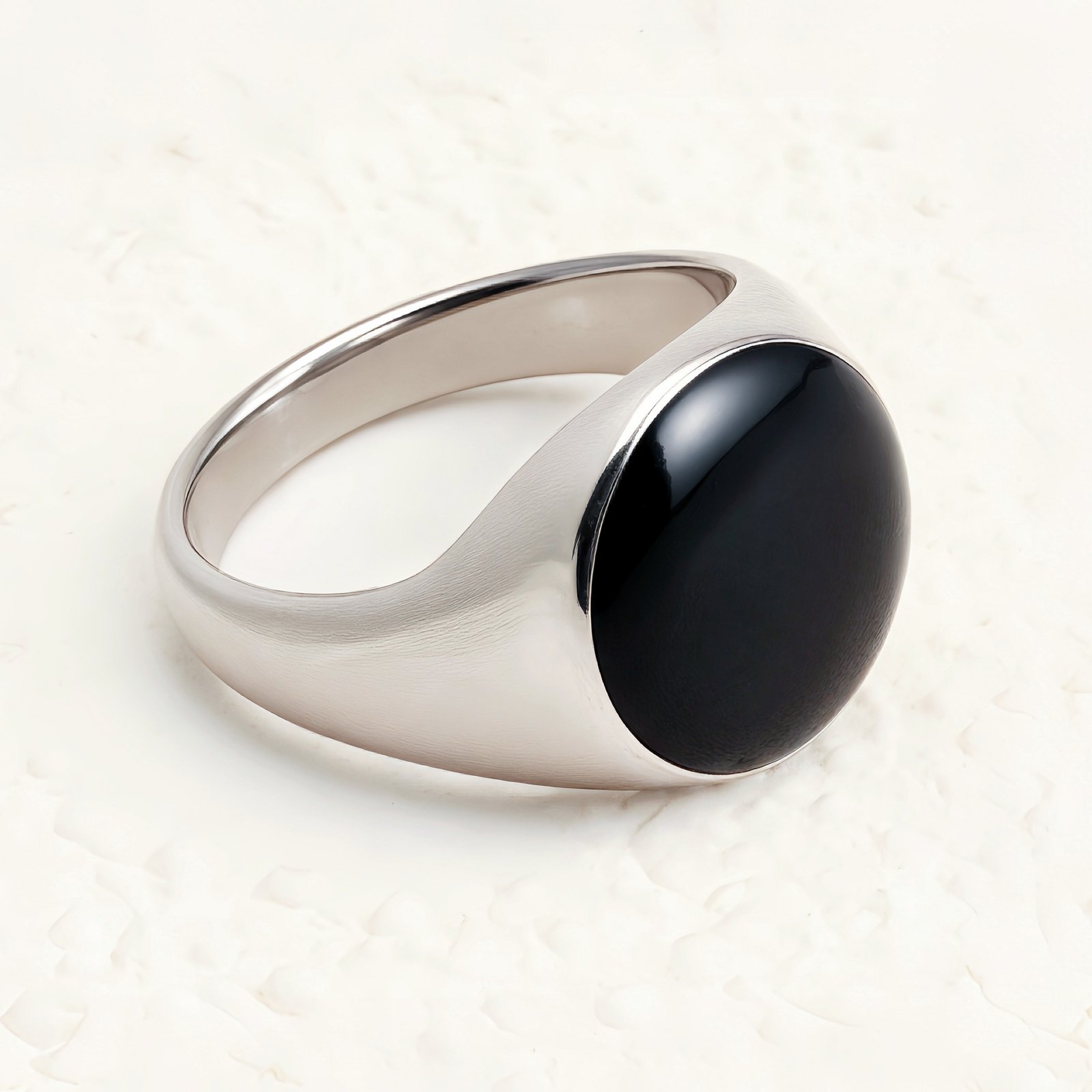 Minimalist Oval Black Gem Silver Ring, Classic Unisex Band | DZ125