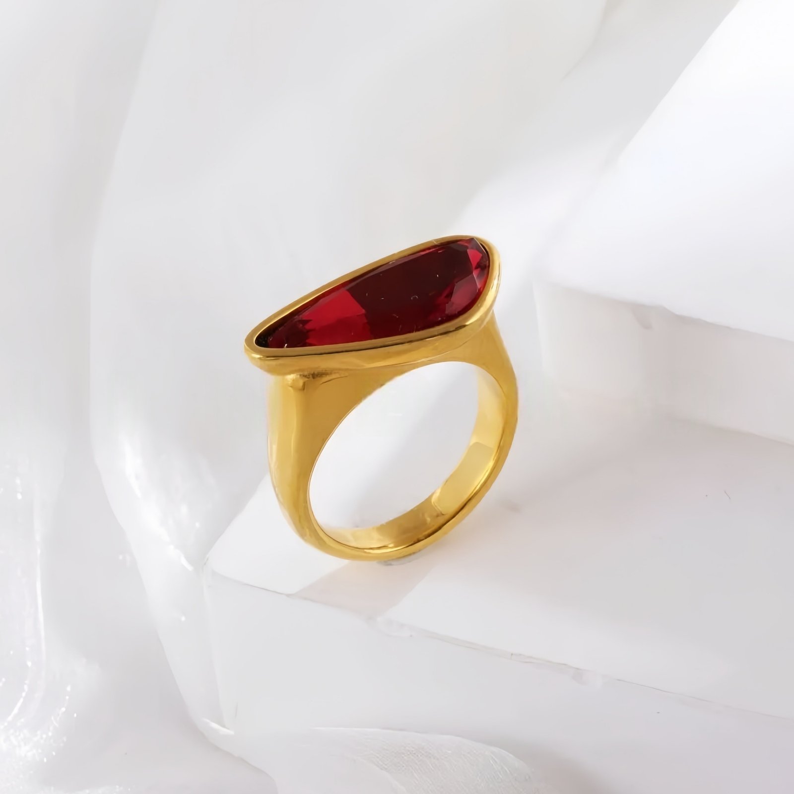 Creative Triangle Gemstone Ring Women’s Gold Stainless Steel Design | PL918