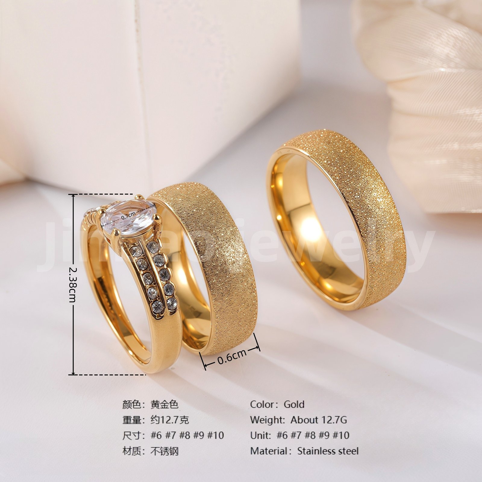 24k Gold-Plating 3 pc His & Her Wedding Ring Set Hypoallergenic, Cubic Zirconia Ring