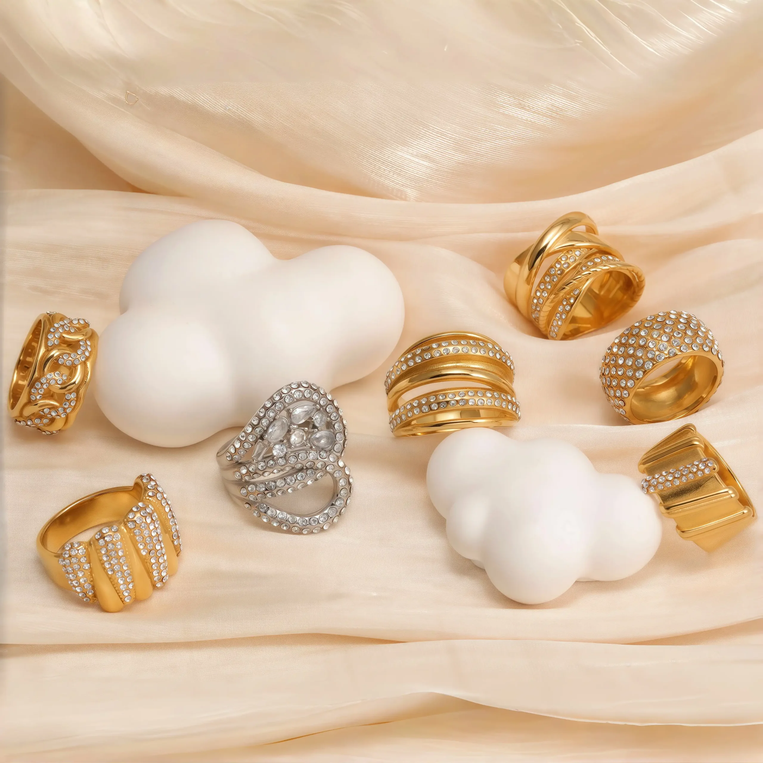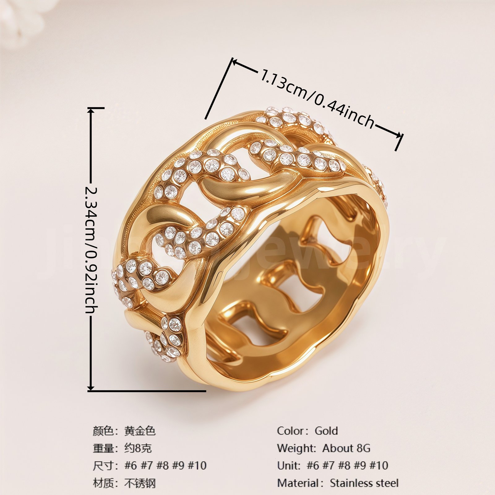 Shiny Full Diamond Stainless Steel Fashion Personality European & American Style Women’s Ring