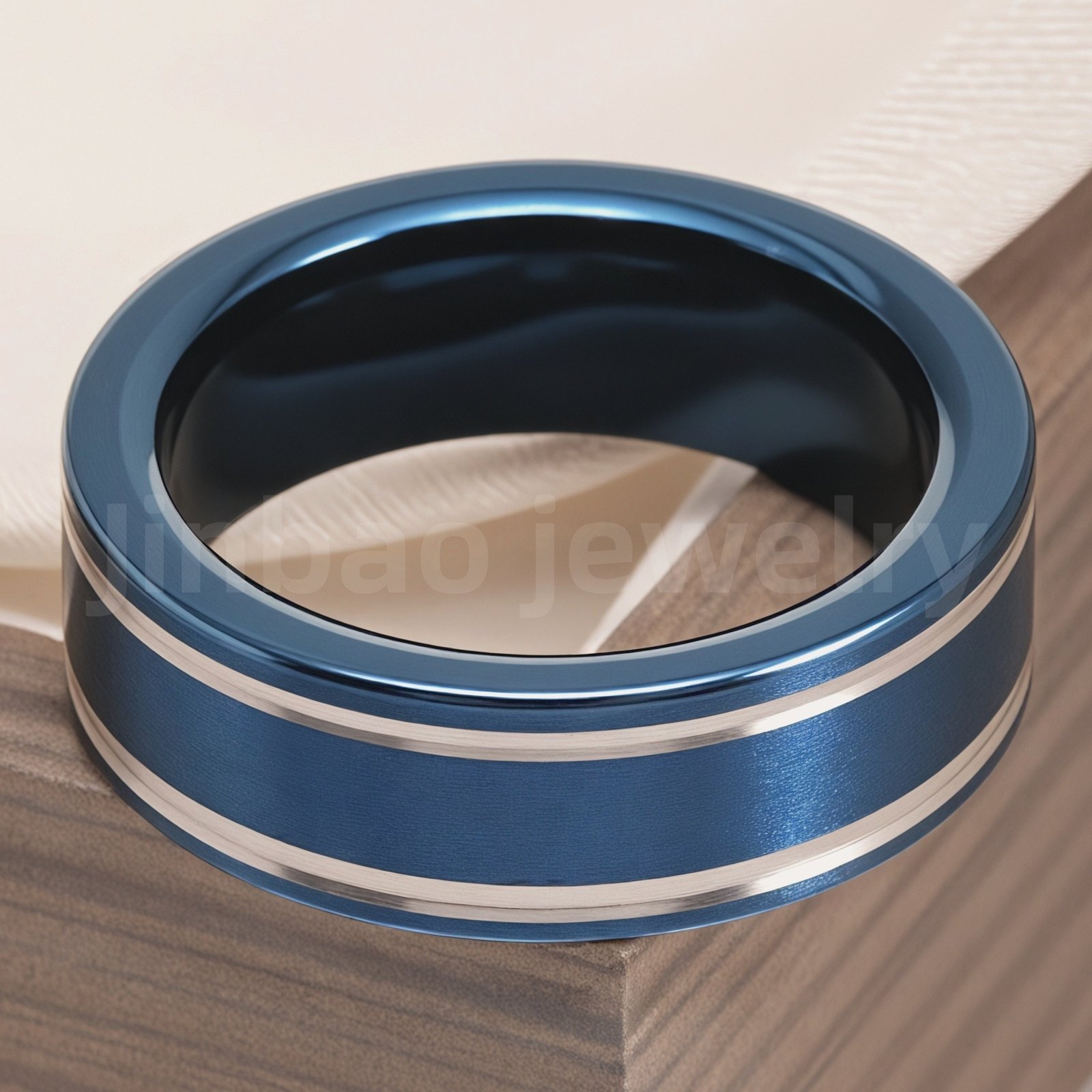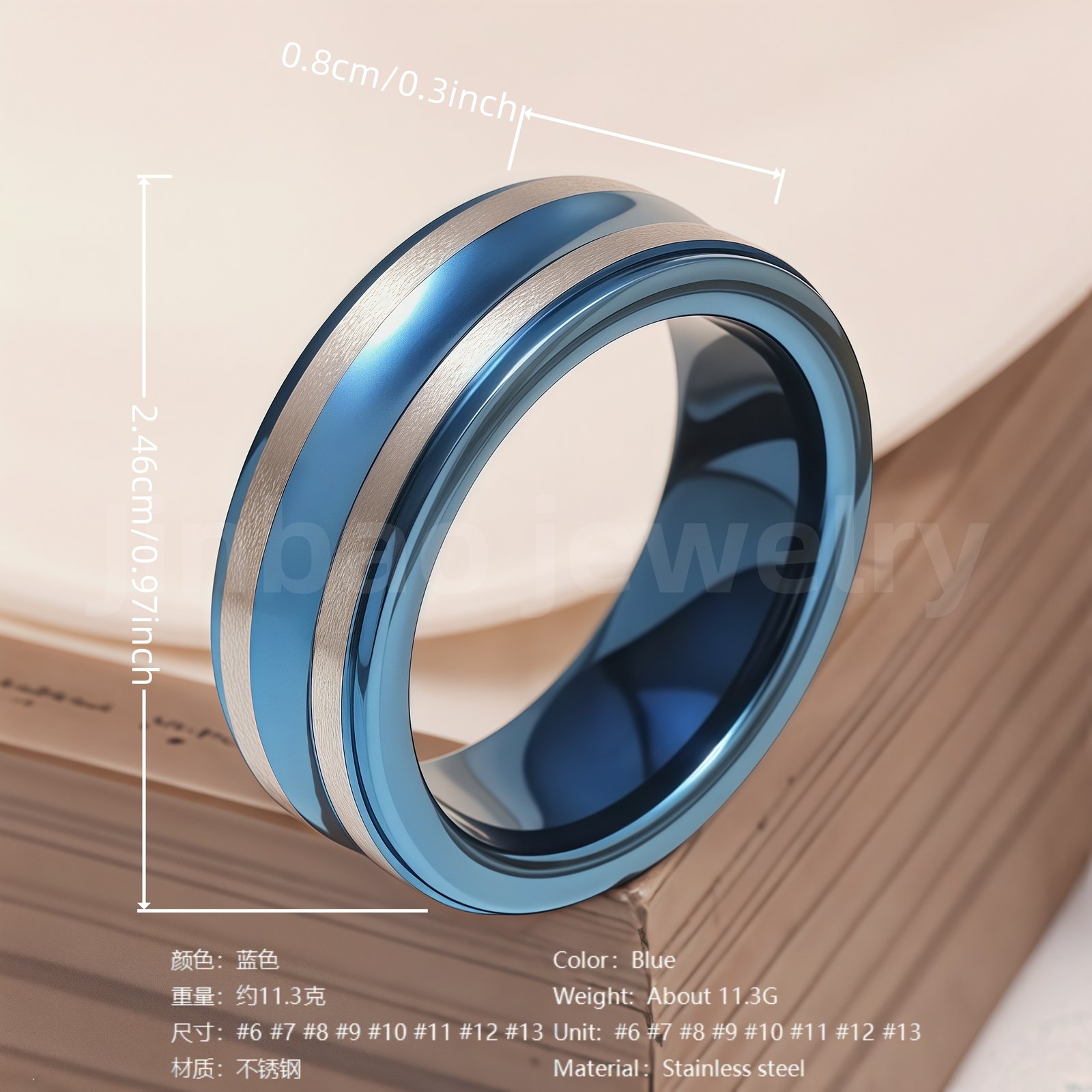 Stainless Steel Stylish Dual-tone Design Fashion Blue Men’s Waterproof Ring