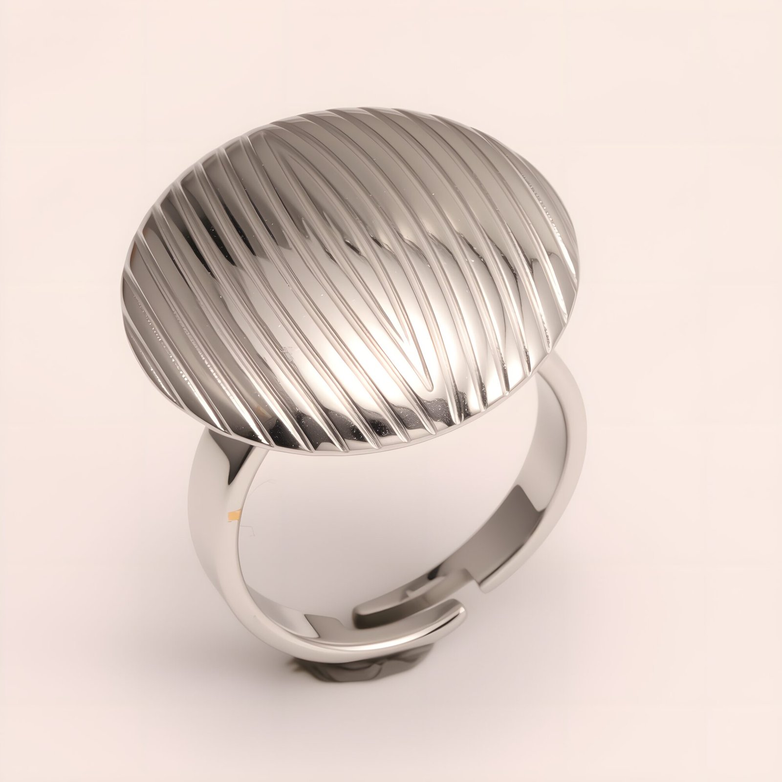 Striped Oval Stainless Steel Open – Ring – Stylish & Versatile for Men and Women | G006424