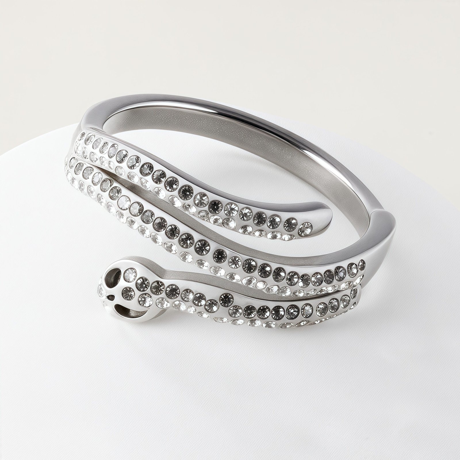 Stylish Diamond-Inlaid Snake-Shaped Silver Stainless Steel Women’s Ring丨IBH-47