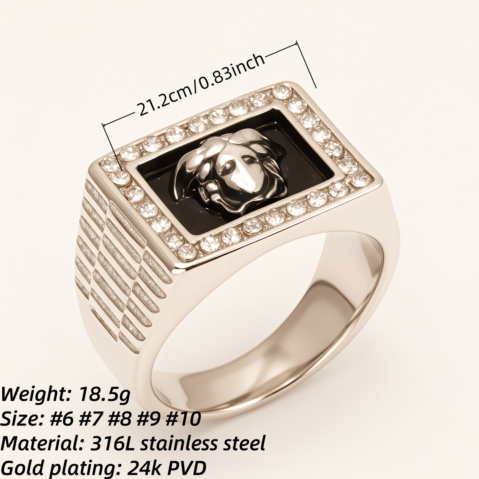 Stylish Men’s Stainless Steel Ring Embellished with Diamonds and Medusa Motif | DZ299