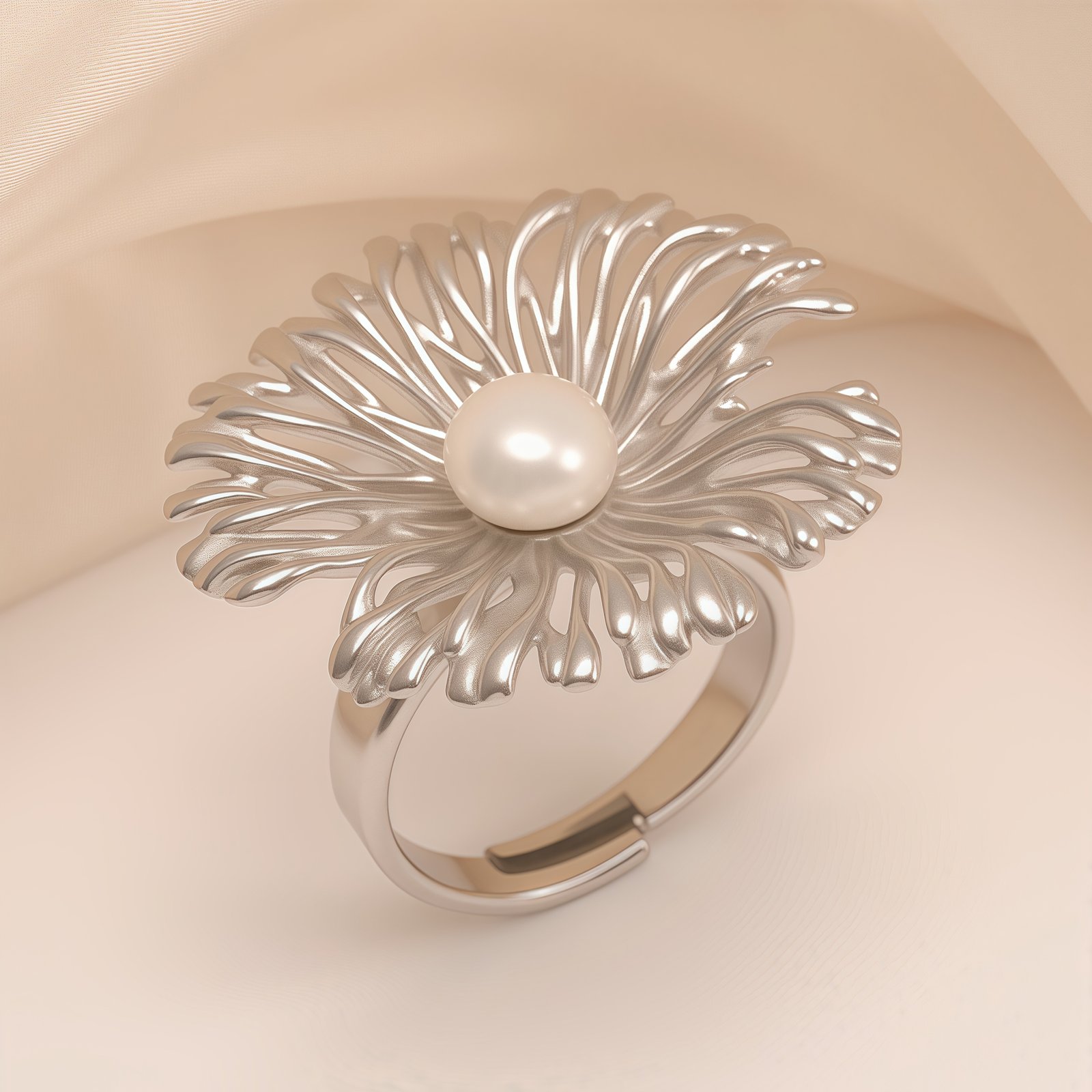 Stylish Pearl Flower Open – Women’s Ring, Gold and Silver Versions | N005530