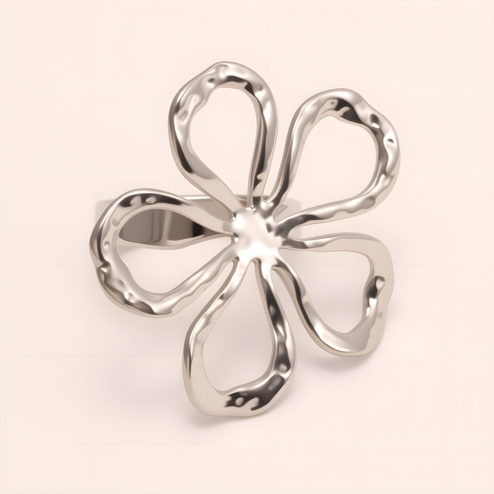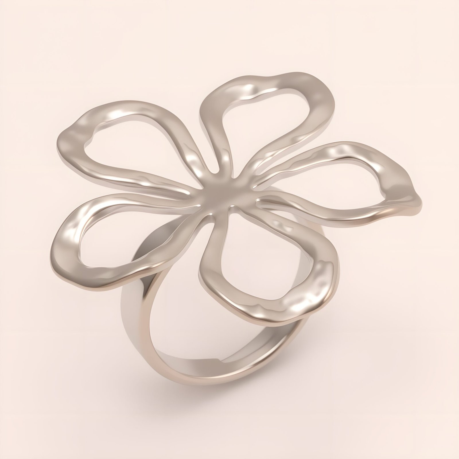 Stylish Women’s Gold – and – Silver Hollow Floral – shaped Ring | G005614