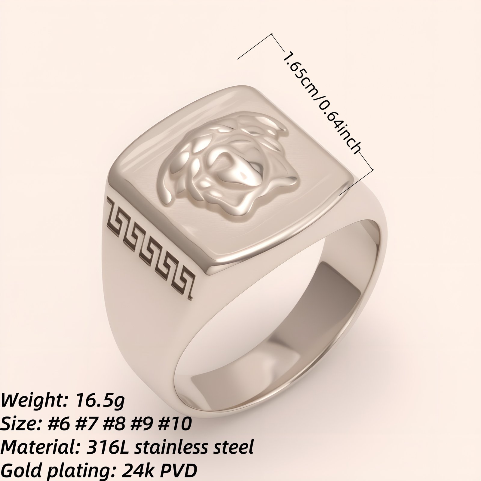 Trendy Men’s Stainless Steel Ring with Embossed Medusa and Meander Pattern | G002659G