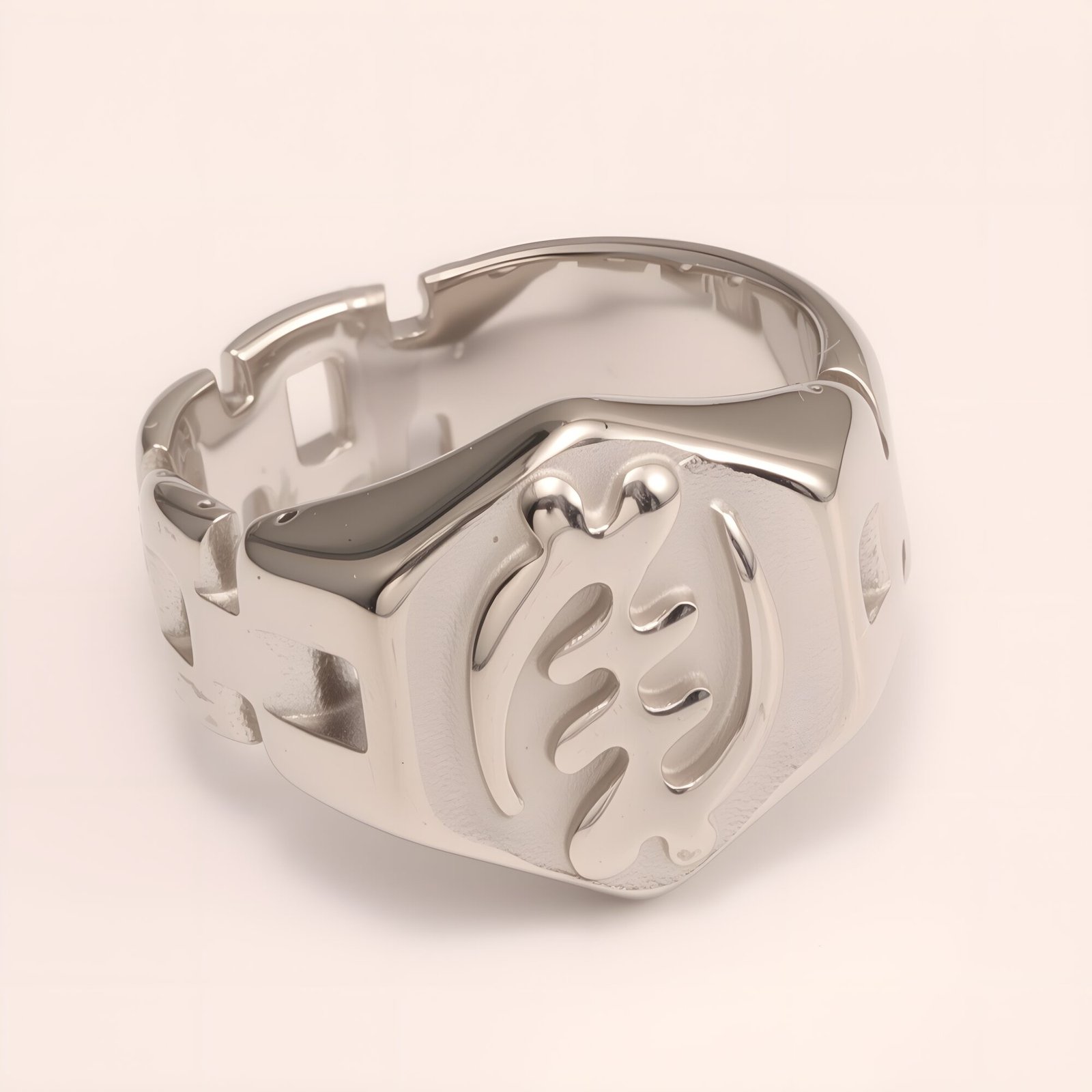 Uniquely – patterned Octagonal Stainless Steel Ring – Stylish Choice for Men | G003451G