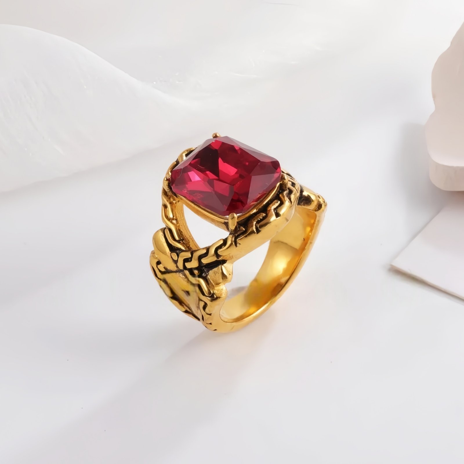 Vintage Chain Inlaid Gemstone Ring Men’s Fashion Square Ring | K00659