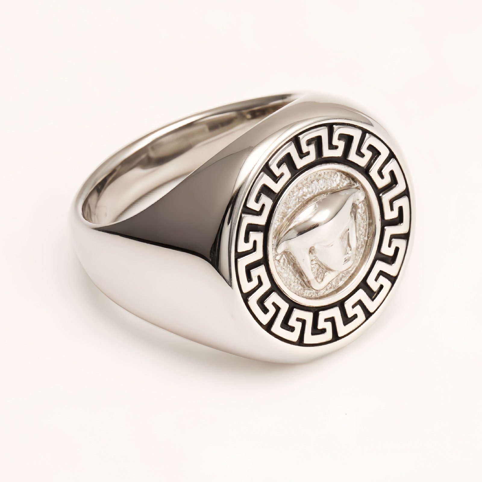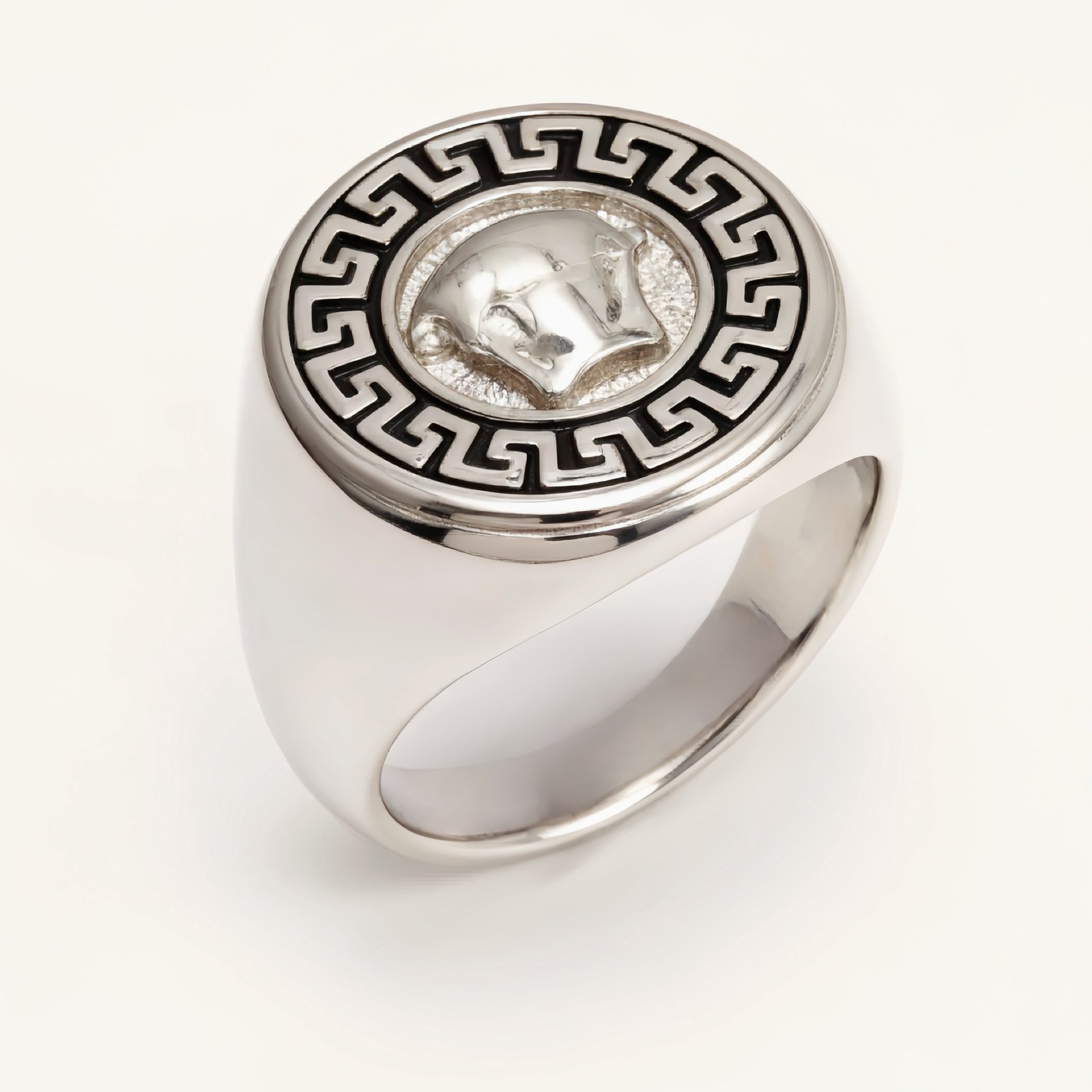 Vintage Greek Key Medusa Head Silver Ring, Trendy Men’s Band | DZ255