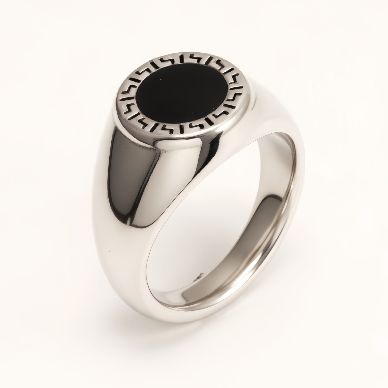 Vintage Meander Black – Faced Silver Ring, Minimalist Band for Trendsetters | DZ474