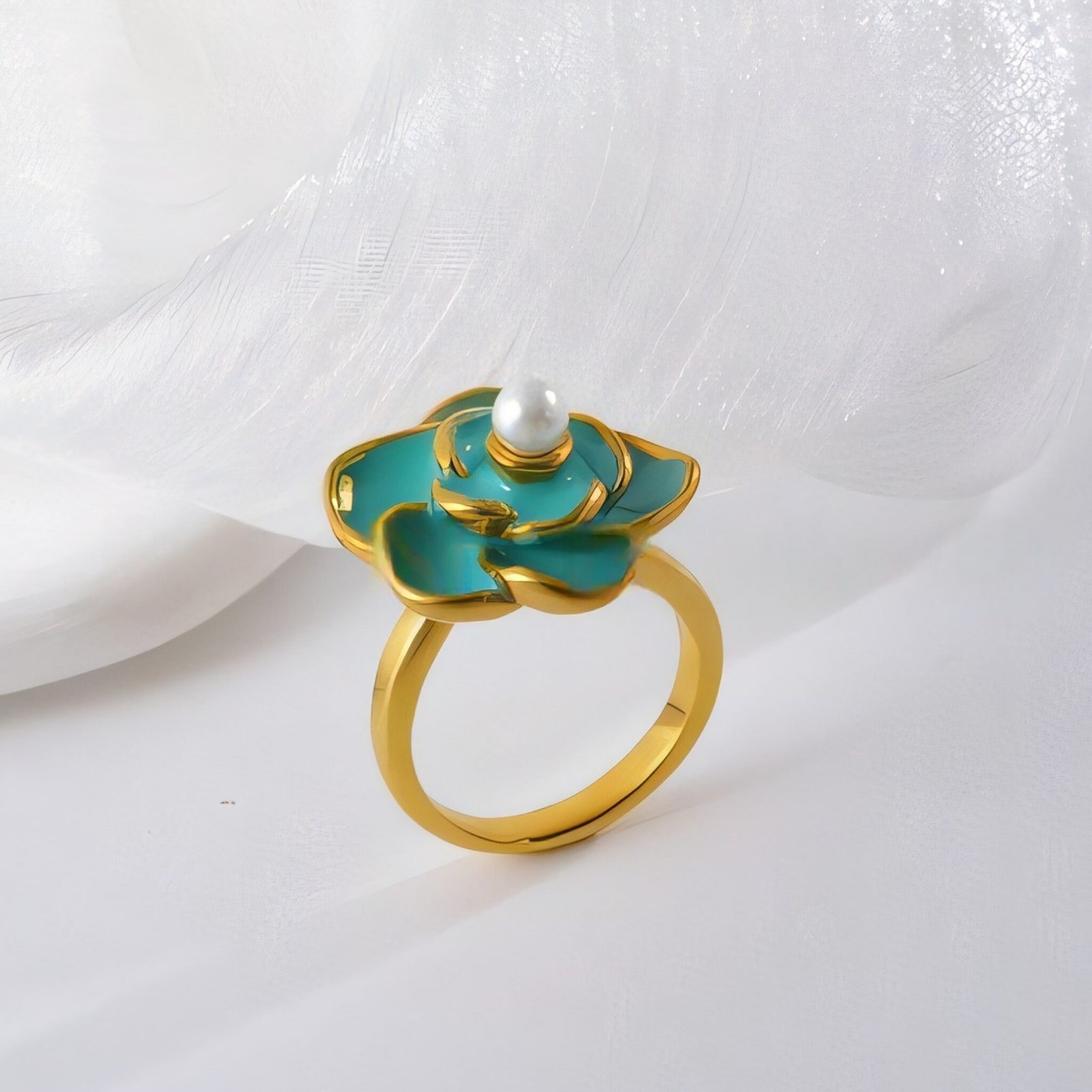 Elegant Flower Ring with Pearl Gold Accent for Women | WF-666