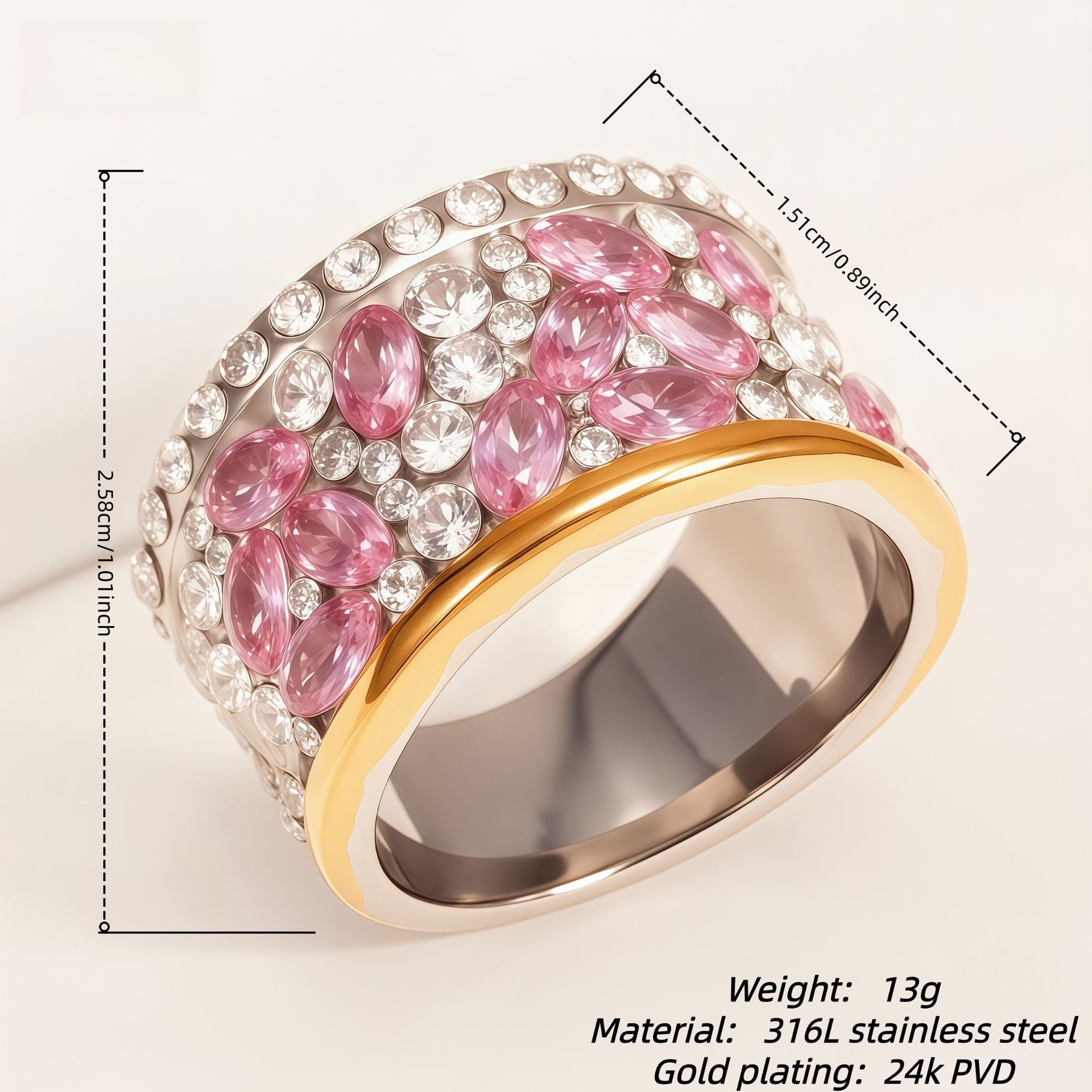 Cross-border exclusive supply to Europe and America: vintage luxury full-diamond starry sky 316L stainless steel women's ring wholesale from the source factory